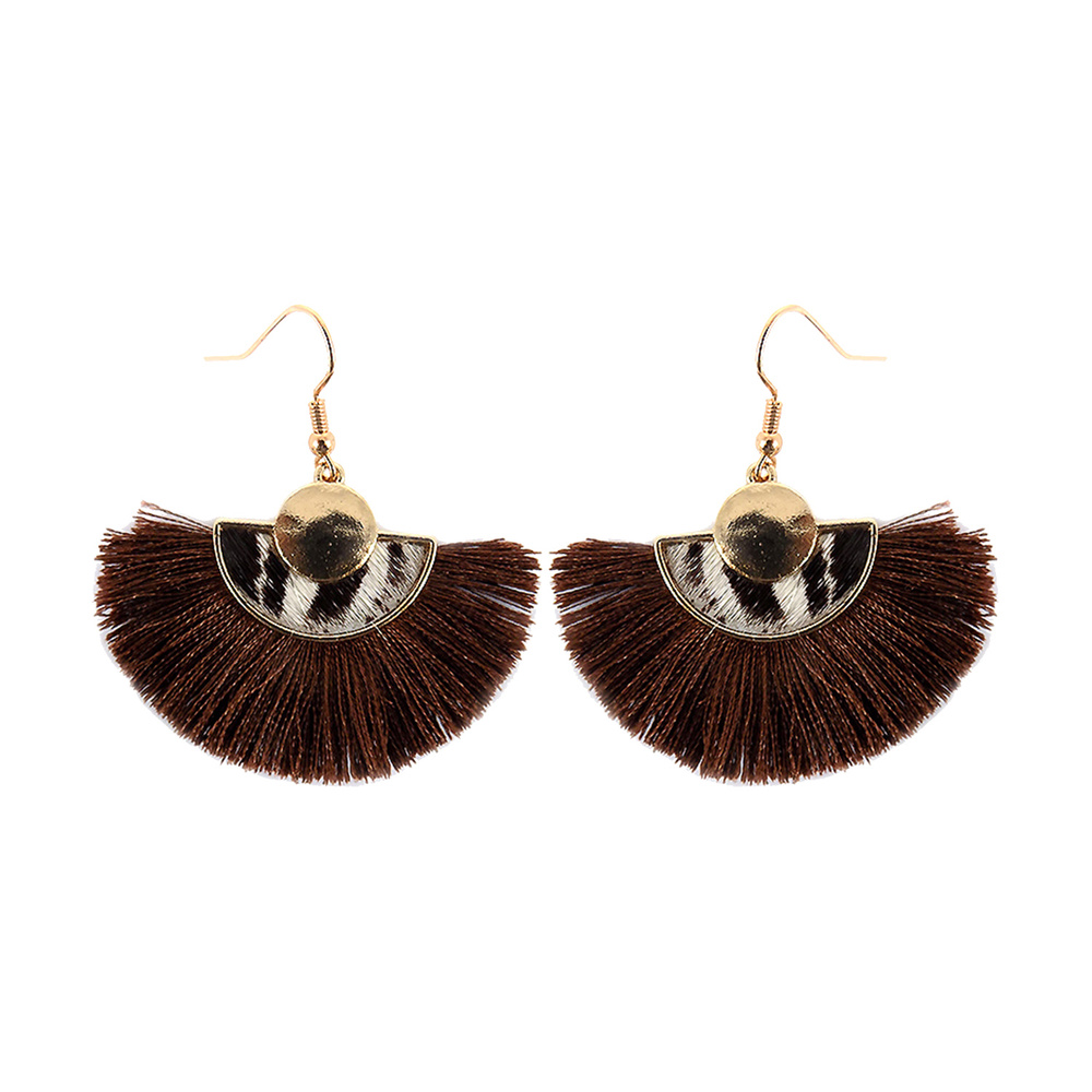 SEMI CIRCLE ANIMAL PRINT TASSEL EARRING