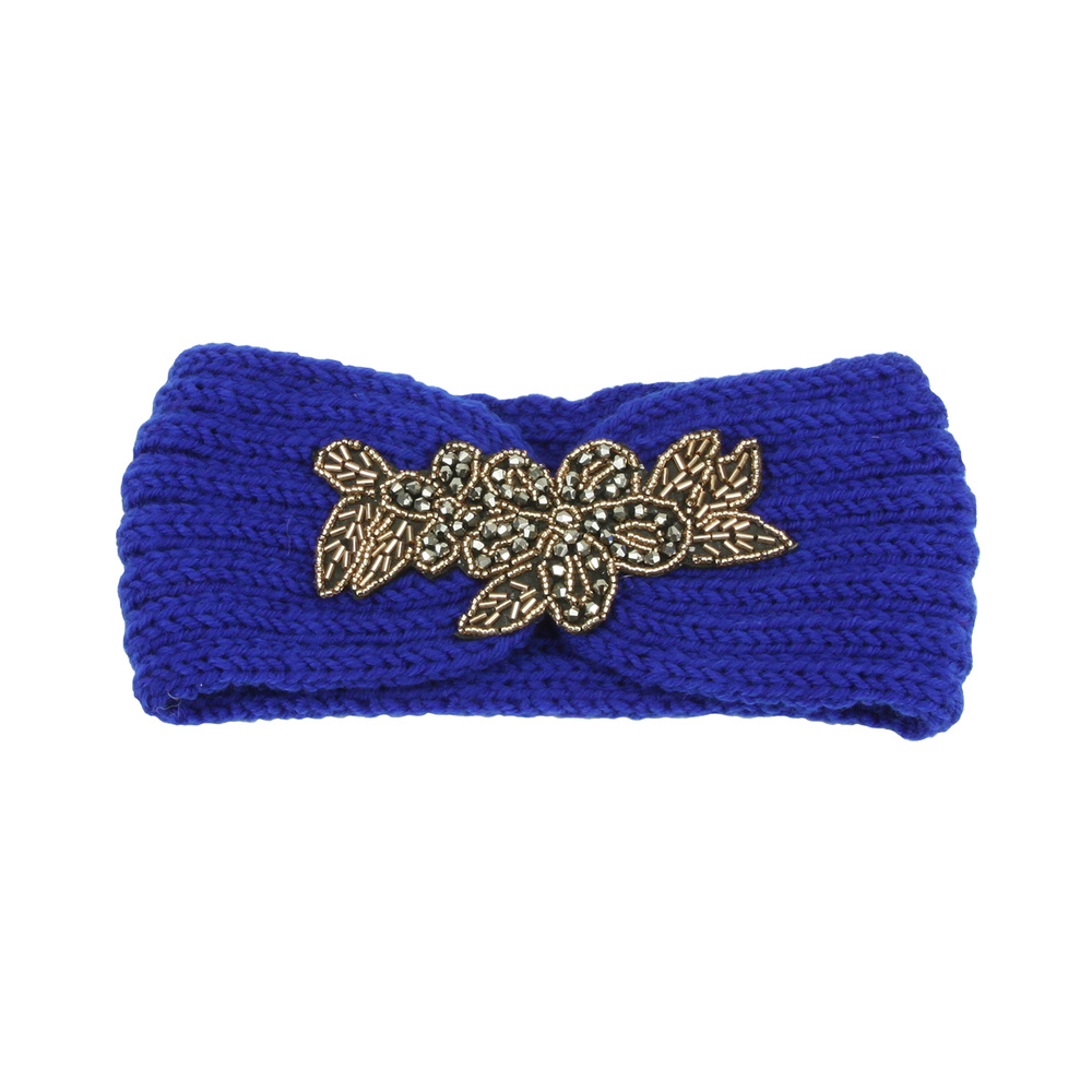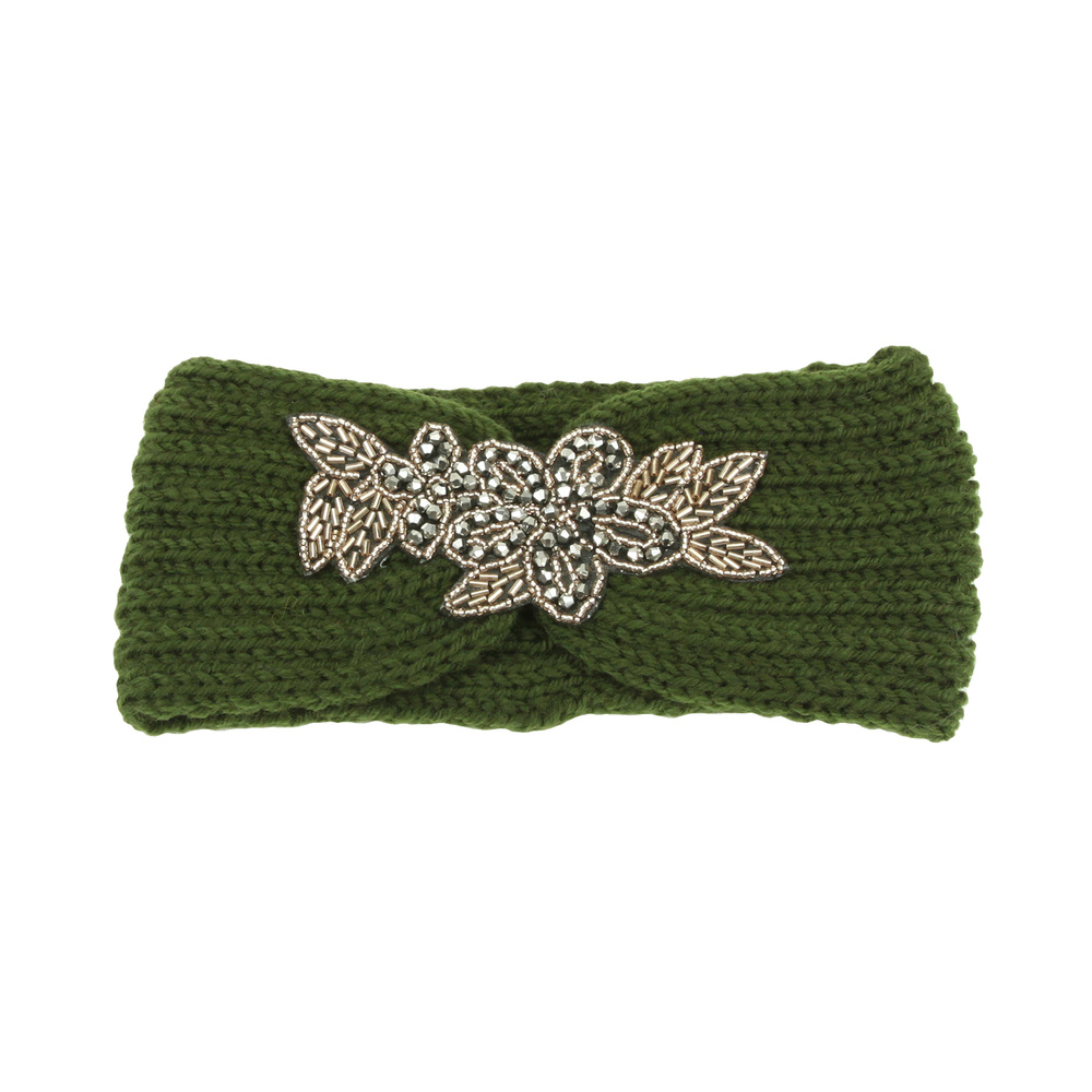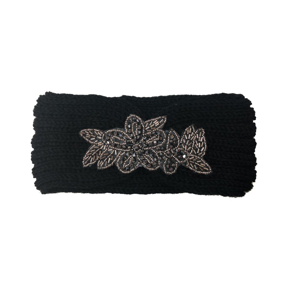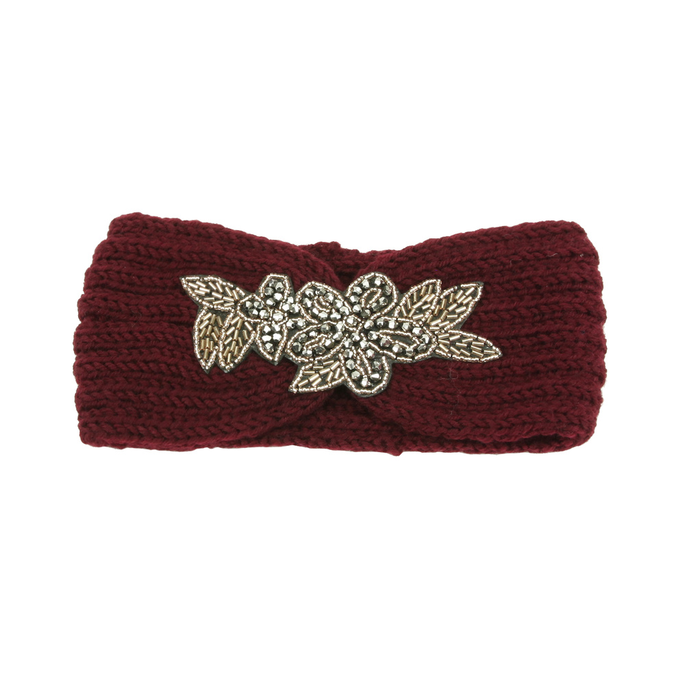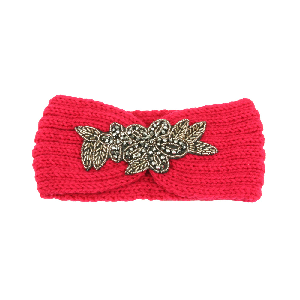 Gem Beaded Cable Knit Flower Turban