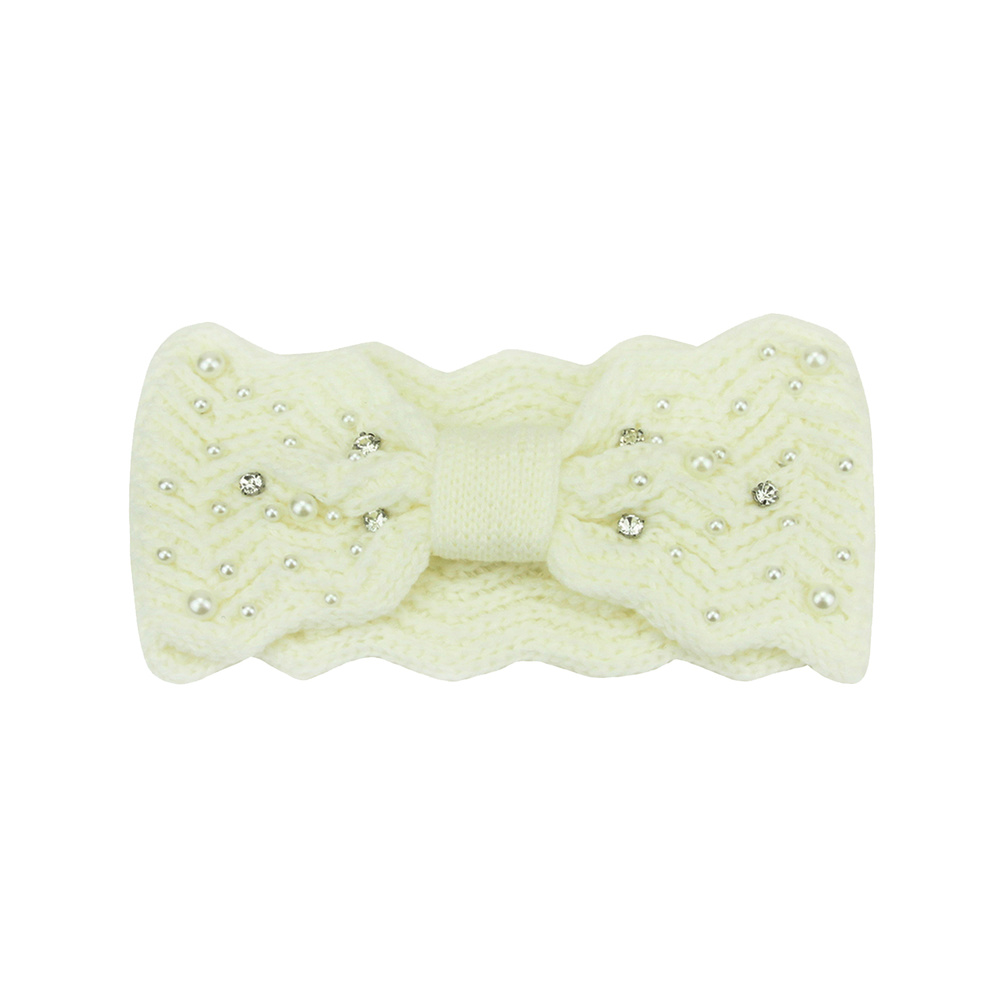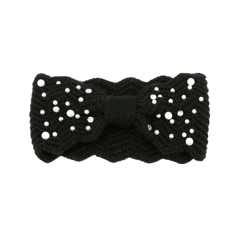 ZIGZAG PEARL STONE KNIT BOW TURBAN