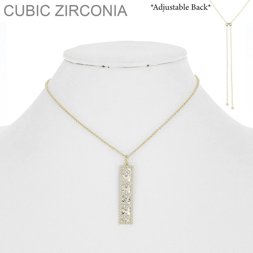 CZ SLIDER NECKLACE W/ REC METAL PENDANT