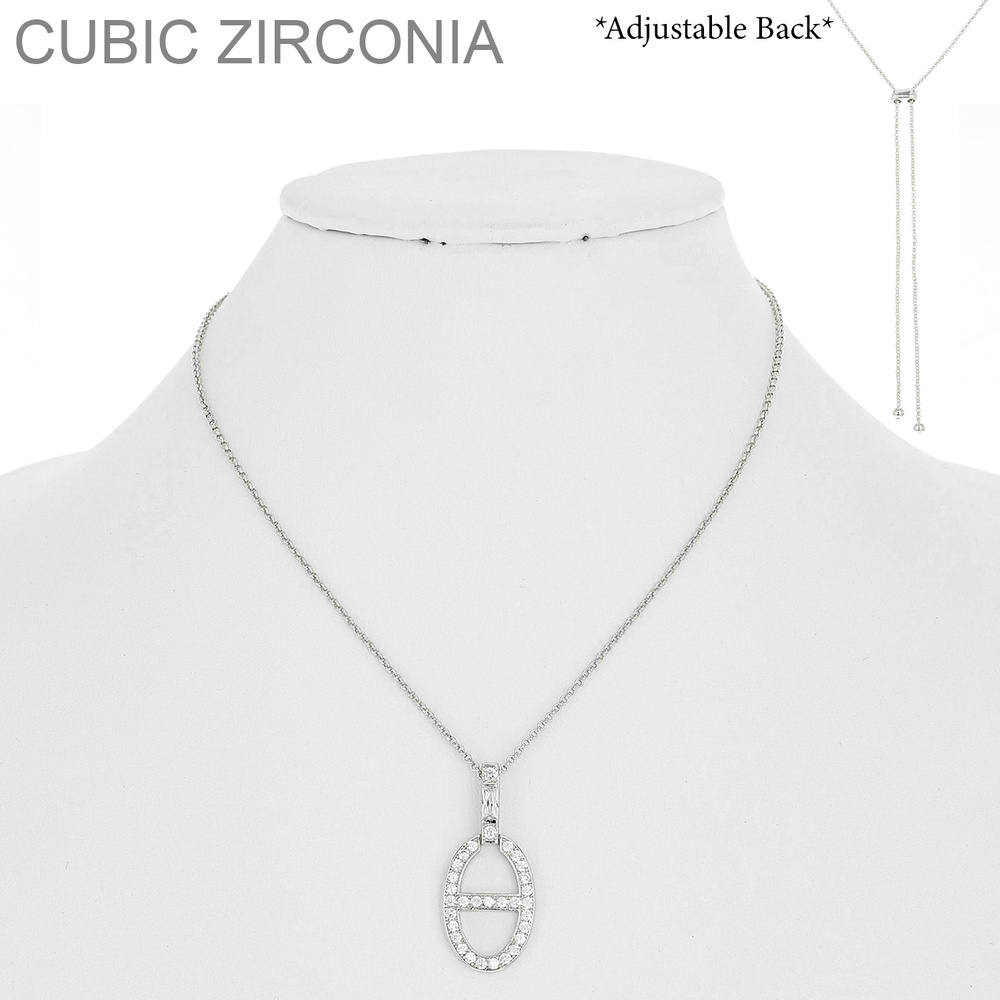 OVAL METAL AND CZ PENDANT NECKLACE