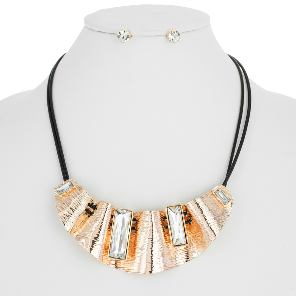 WAVED BIB METAL NECKLACE STONE SET