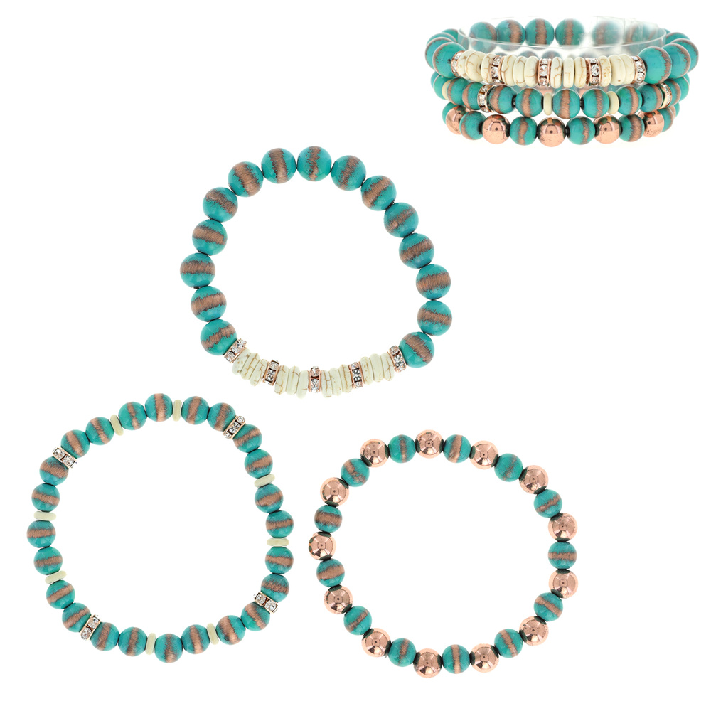 3-piece Set Southwestern Navajo Pearl Copper Multi Bead Stackable Stretch Bracelets