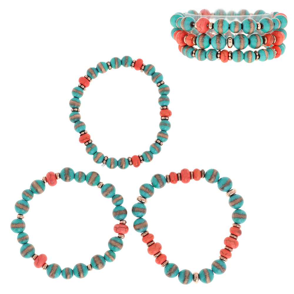 3-piece Set Southwestern Red Jasper Multi Bead Stackable Stretch Bracelets