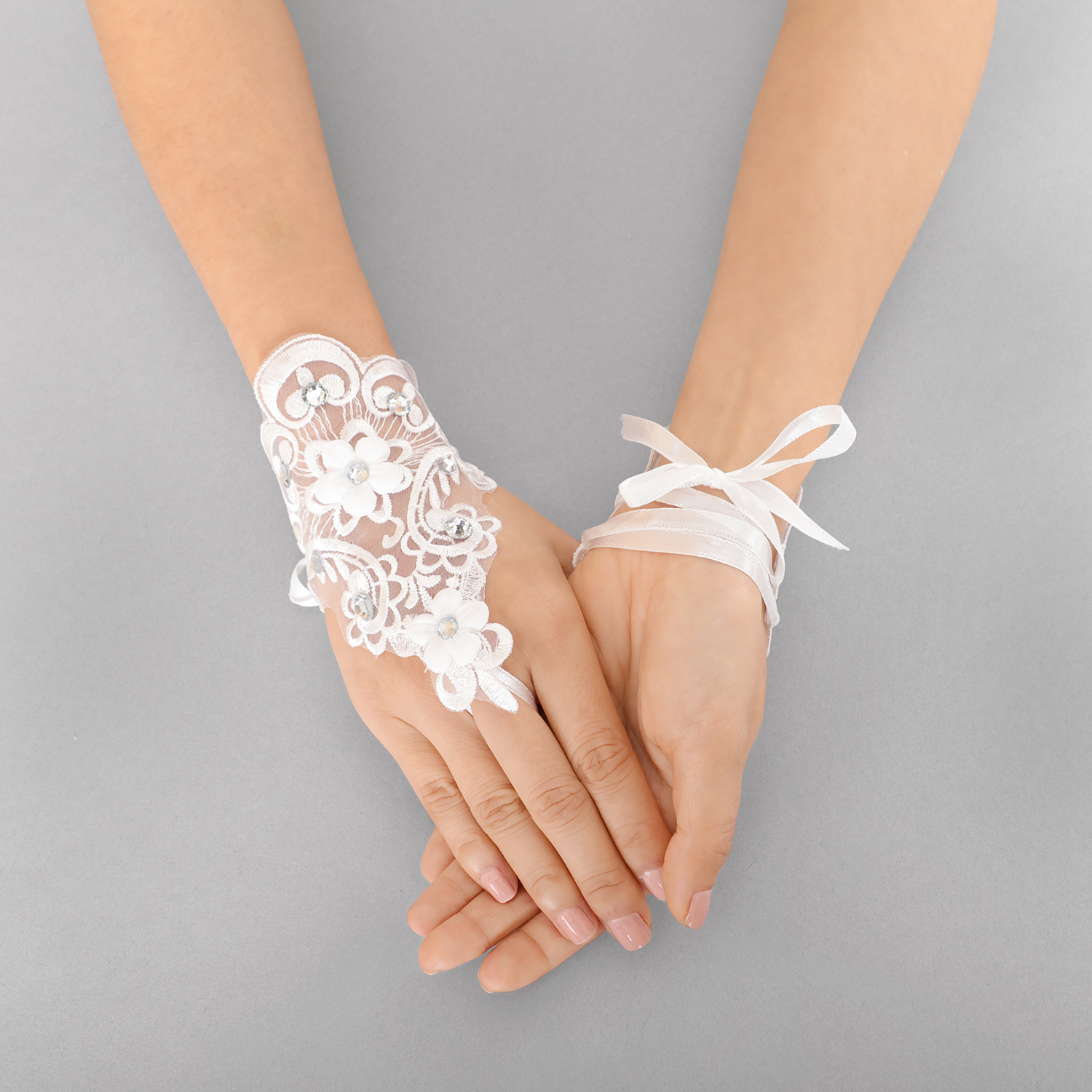 SIMPLE LACE FLOWER GEM STONE GLOVE