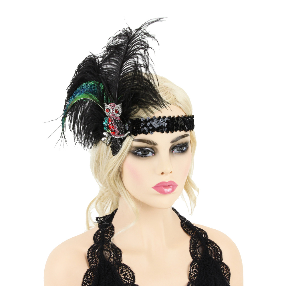 FEATHER OWL SEQUIN GATSBY HEADBAND