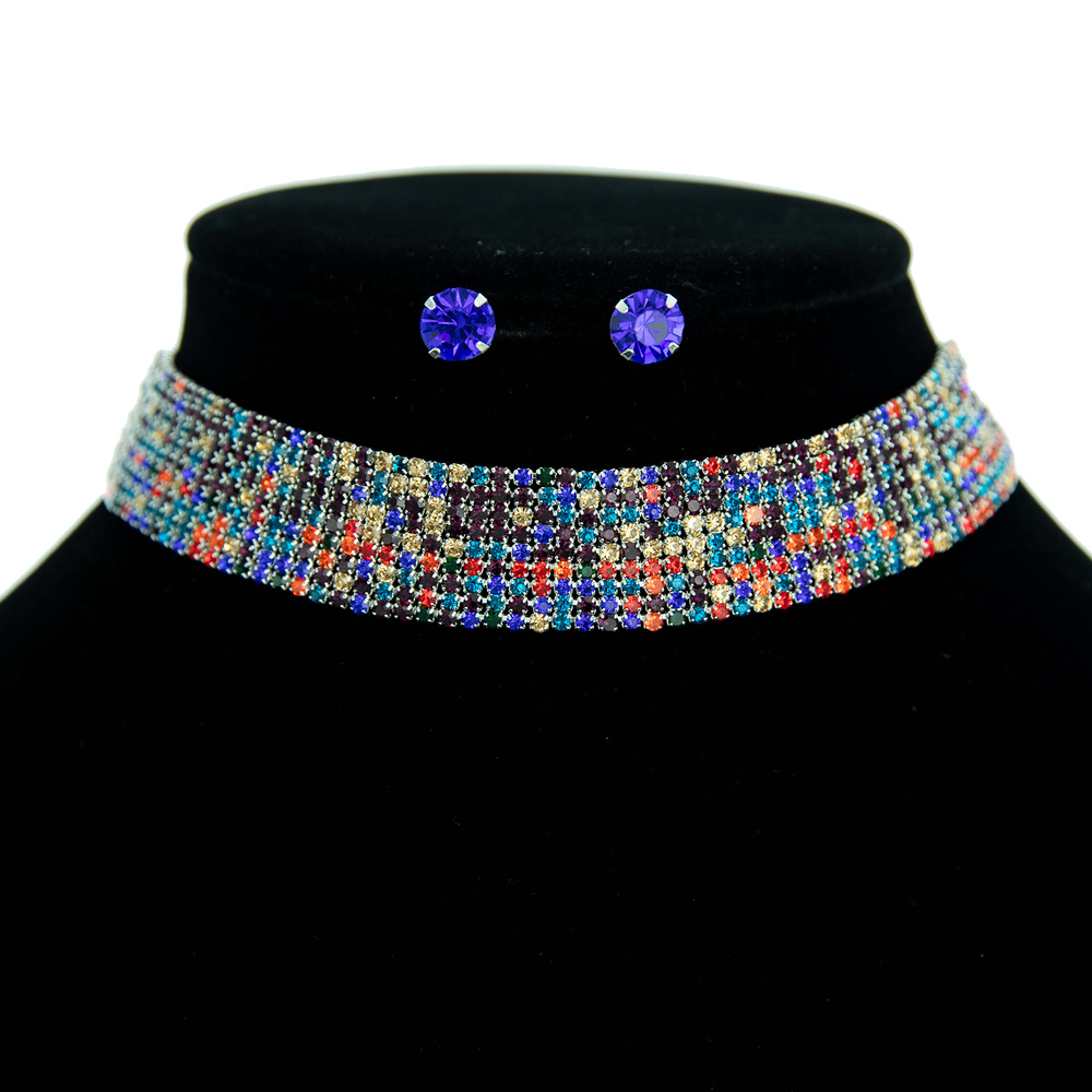 9 Line Rhinestone Choker & Earring Set