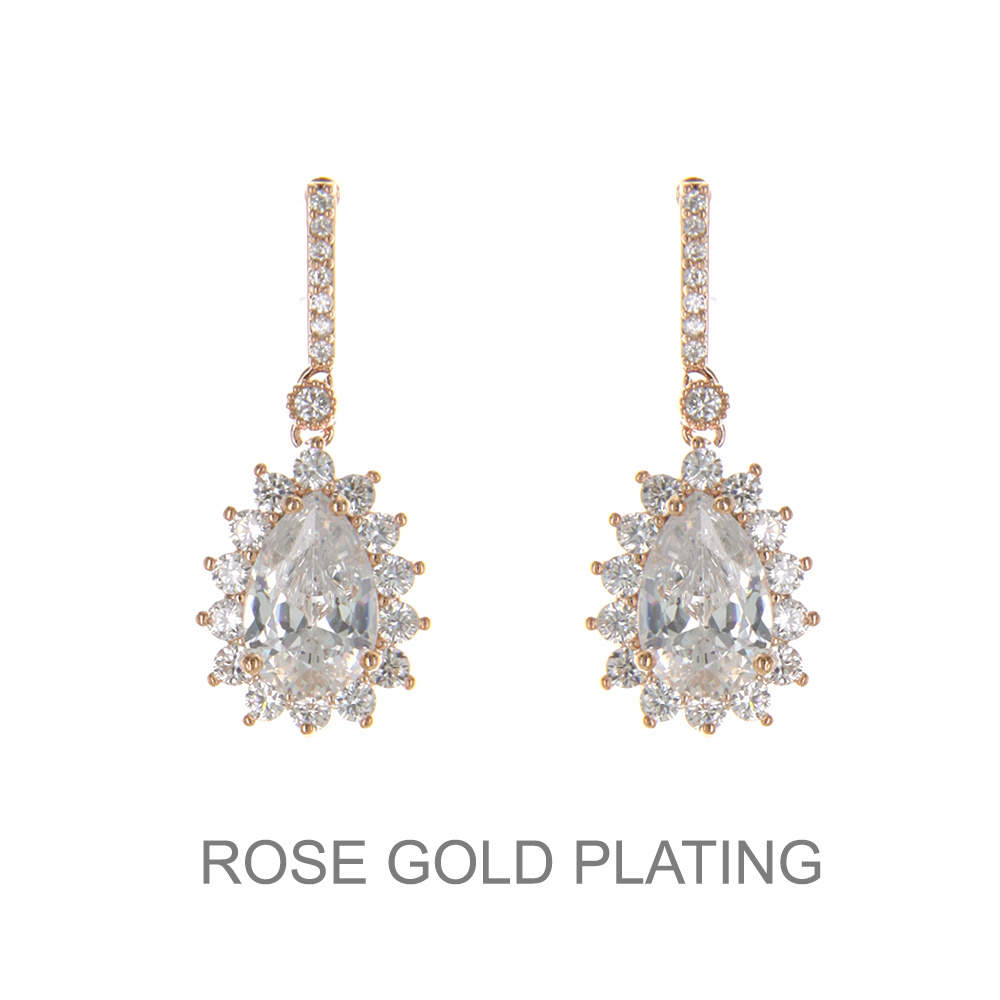 PLATED DANGLY TEARDROP CUBIC EARRING