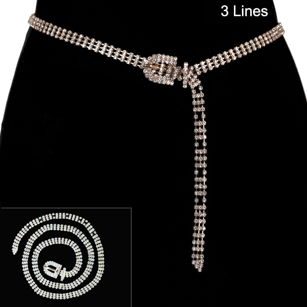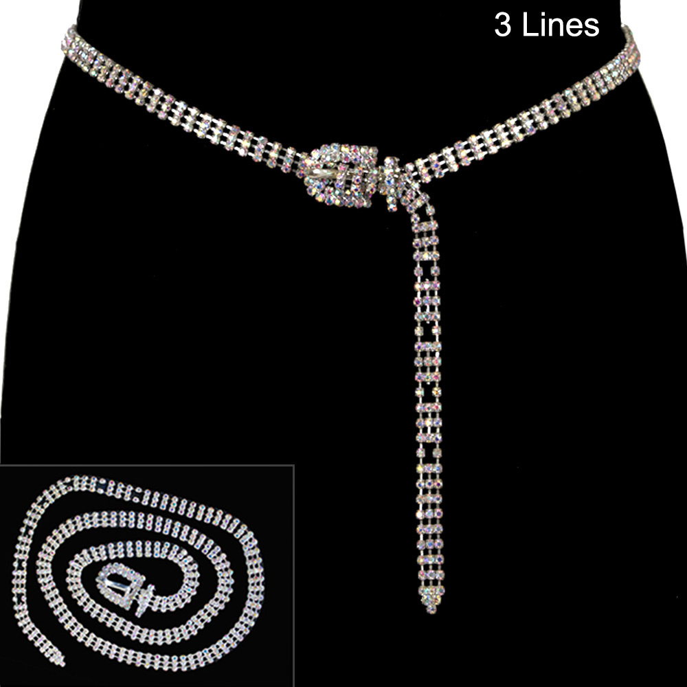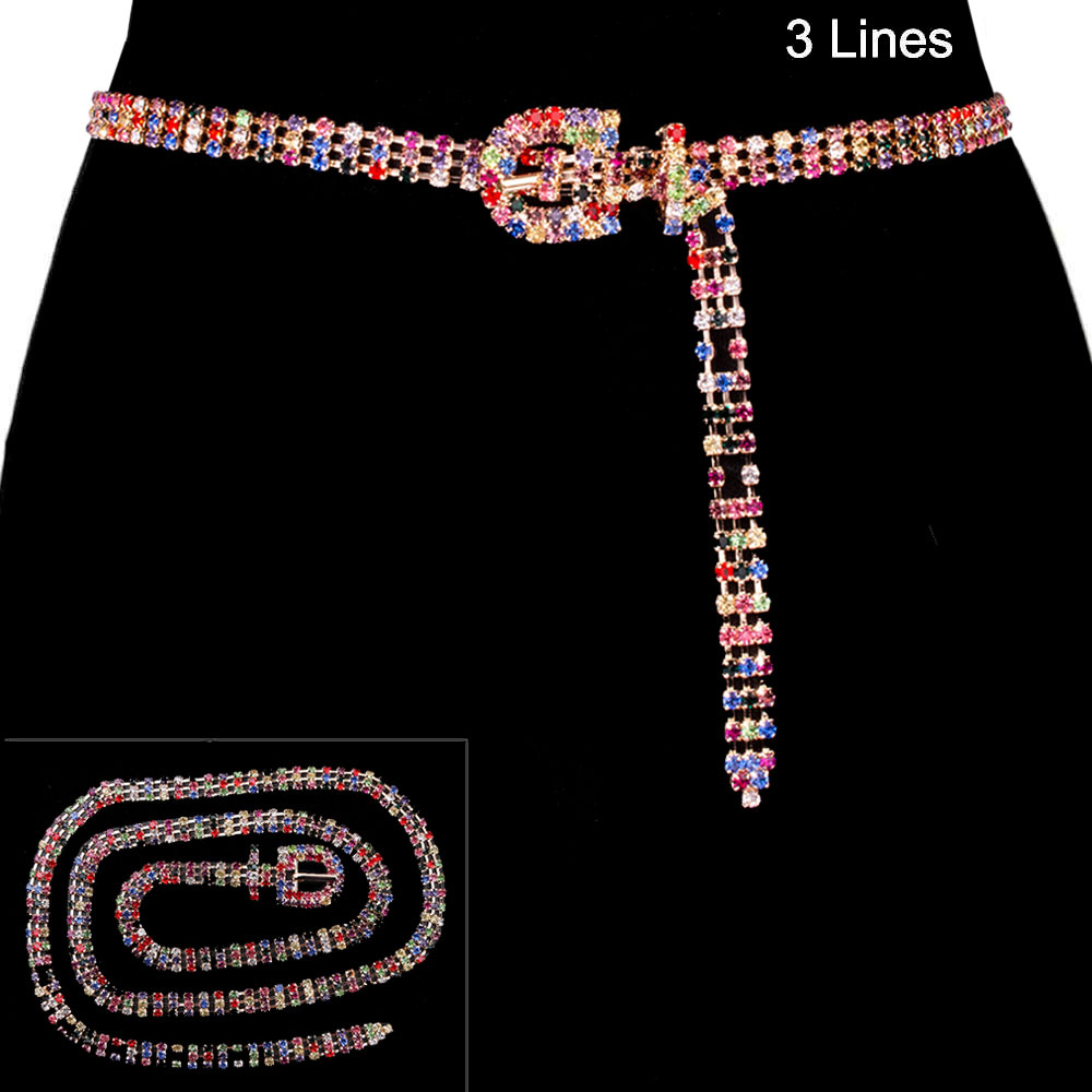 3 LINE RHINESTONE BELT W/ RHINESTONE BUCKLE