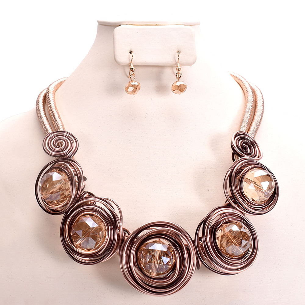 CHROME SPIRAL WIRE BEADED NECKLACE