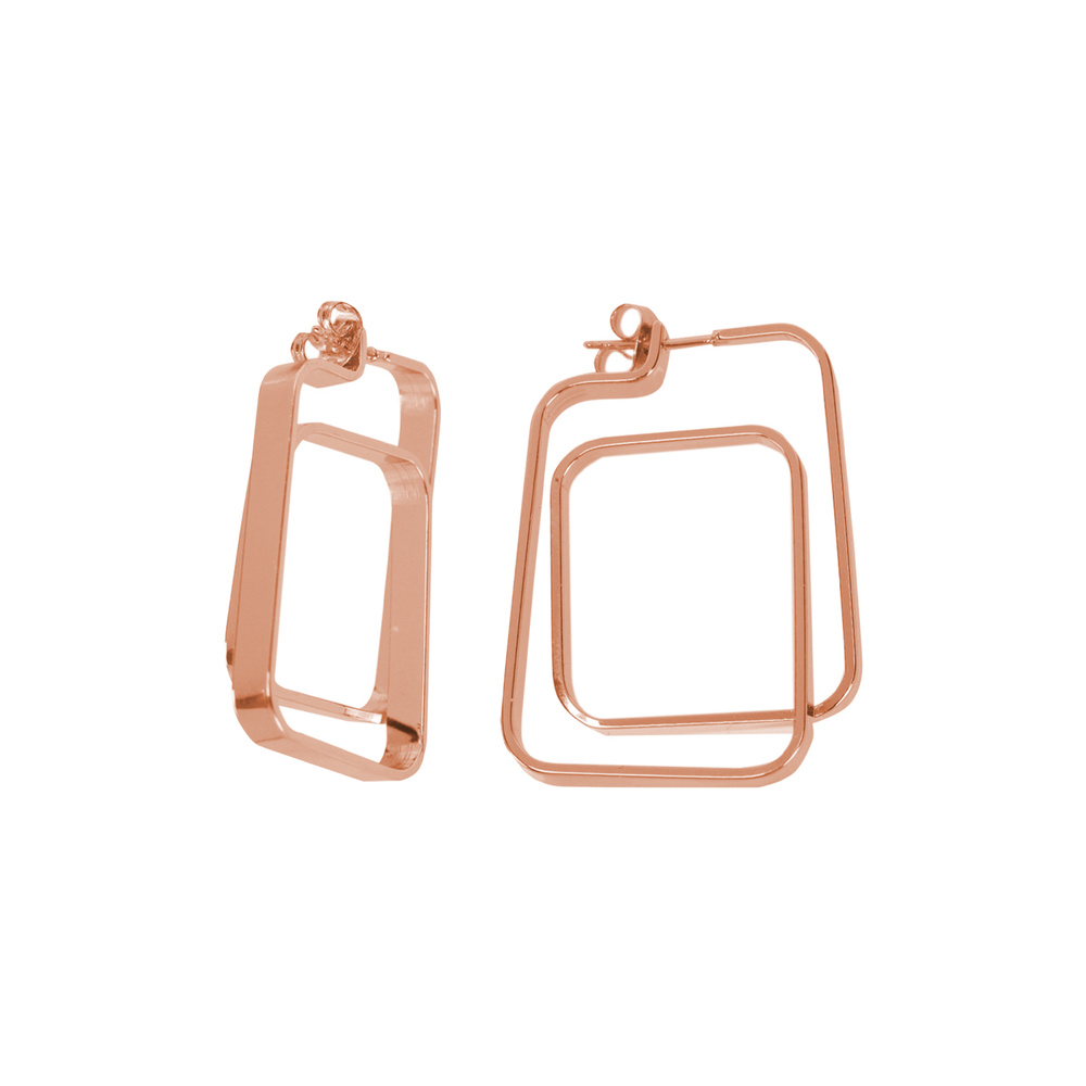 BRASS METEL DOUBLE SQ HOOP EARRING