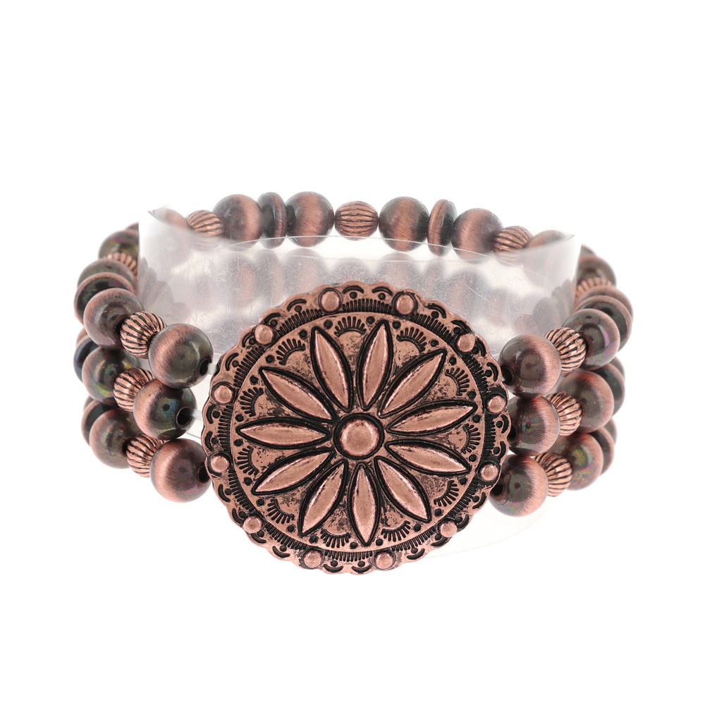Western Navajo Pearl Beaded Multistrand Concho Stretch Bracelet