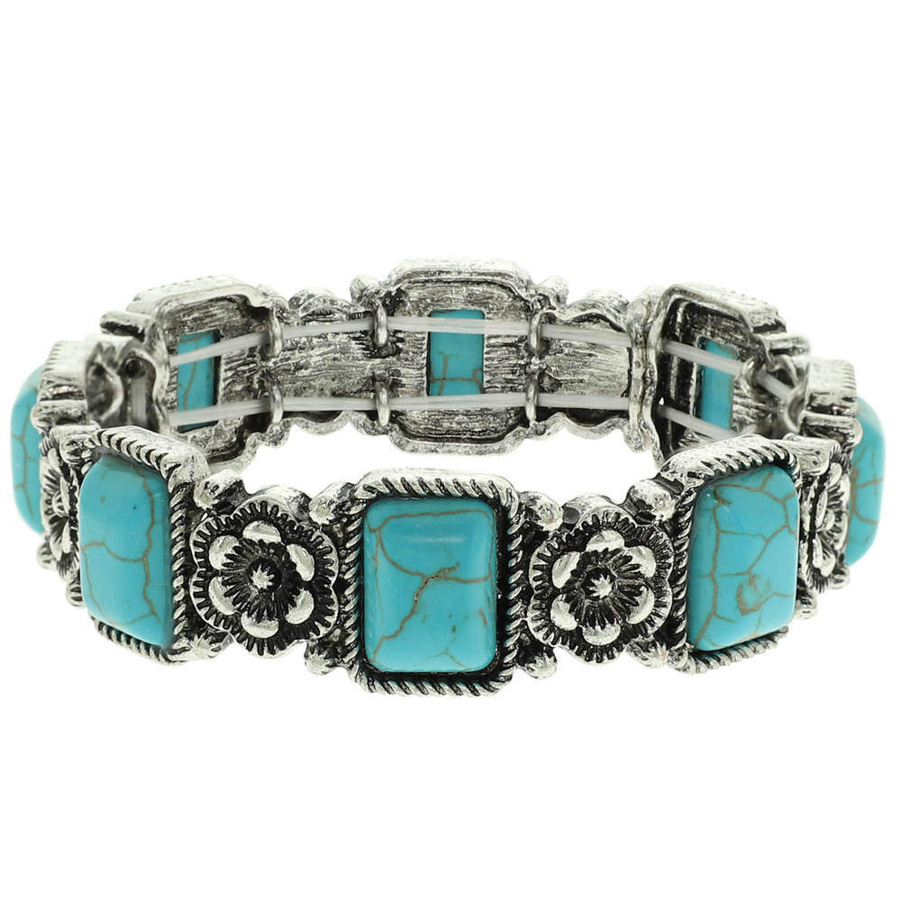 WESTERN FLORAL TURQUOISE EMBELLISHED STRETCH BRACELET