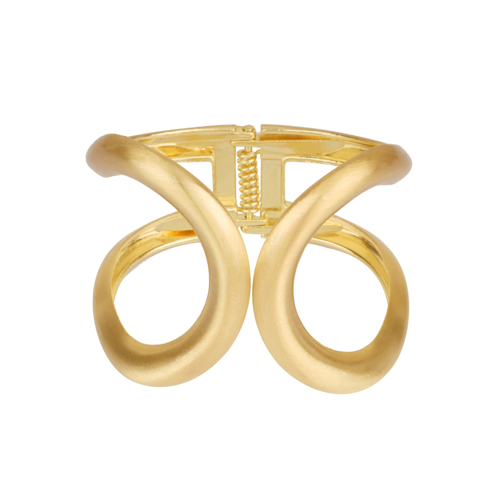 POLISHED OPEN INLAY HINGED BANGLE BRACELET IN GOLD-TONE METAL