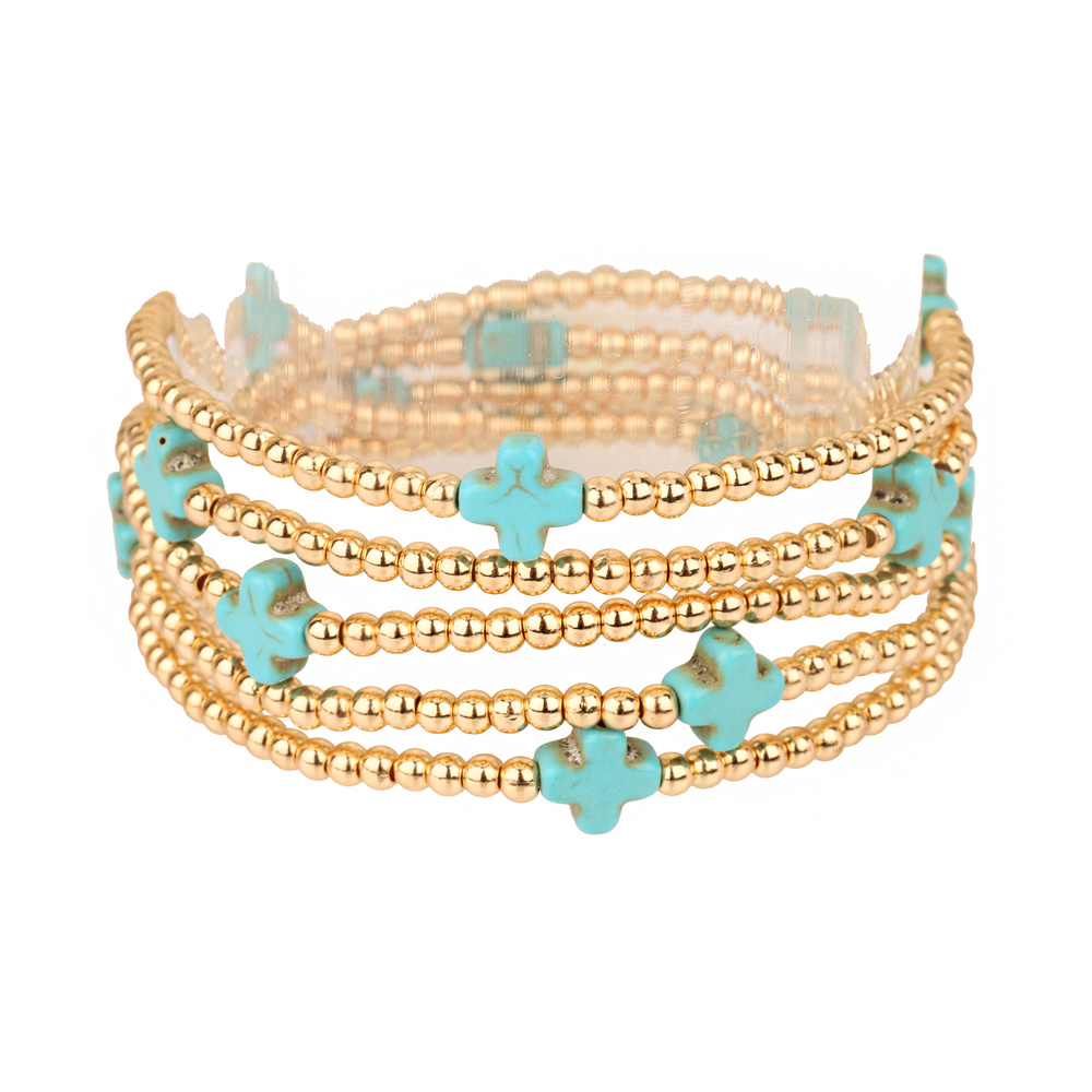 3PC MULTI-LAYERED CROSS CHARM BALLCHAIN BRACELET SET