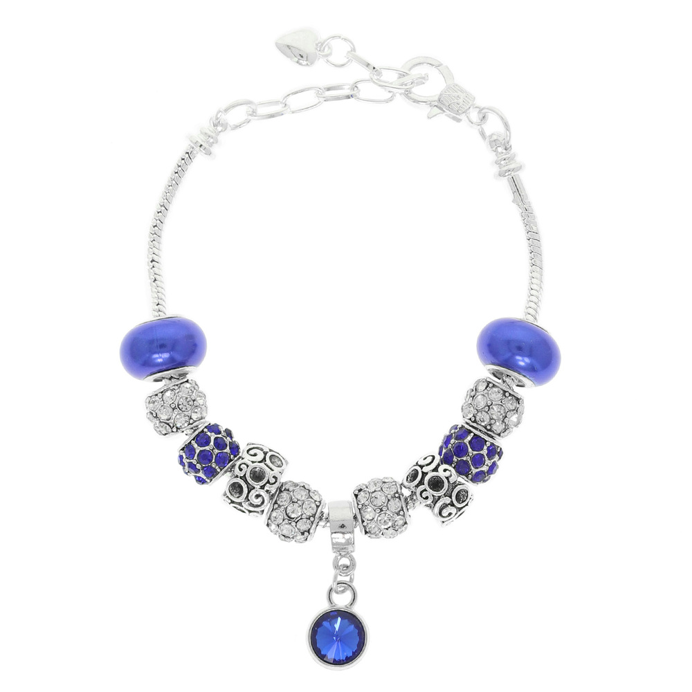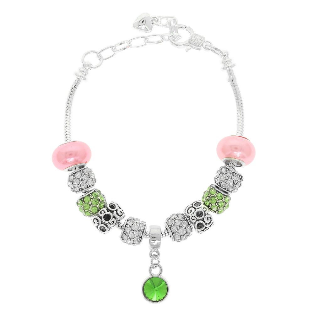 CHARM BRACELET WITH RHINESTONE SPACERS FILIGREE AND CRYSTAL CHARMS