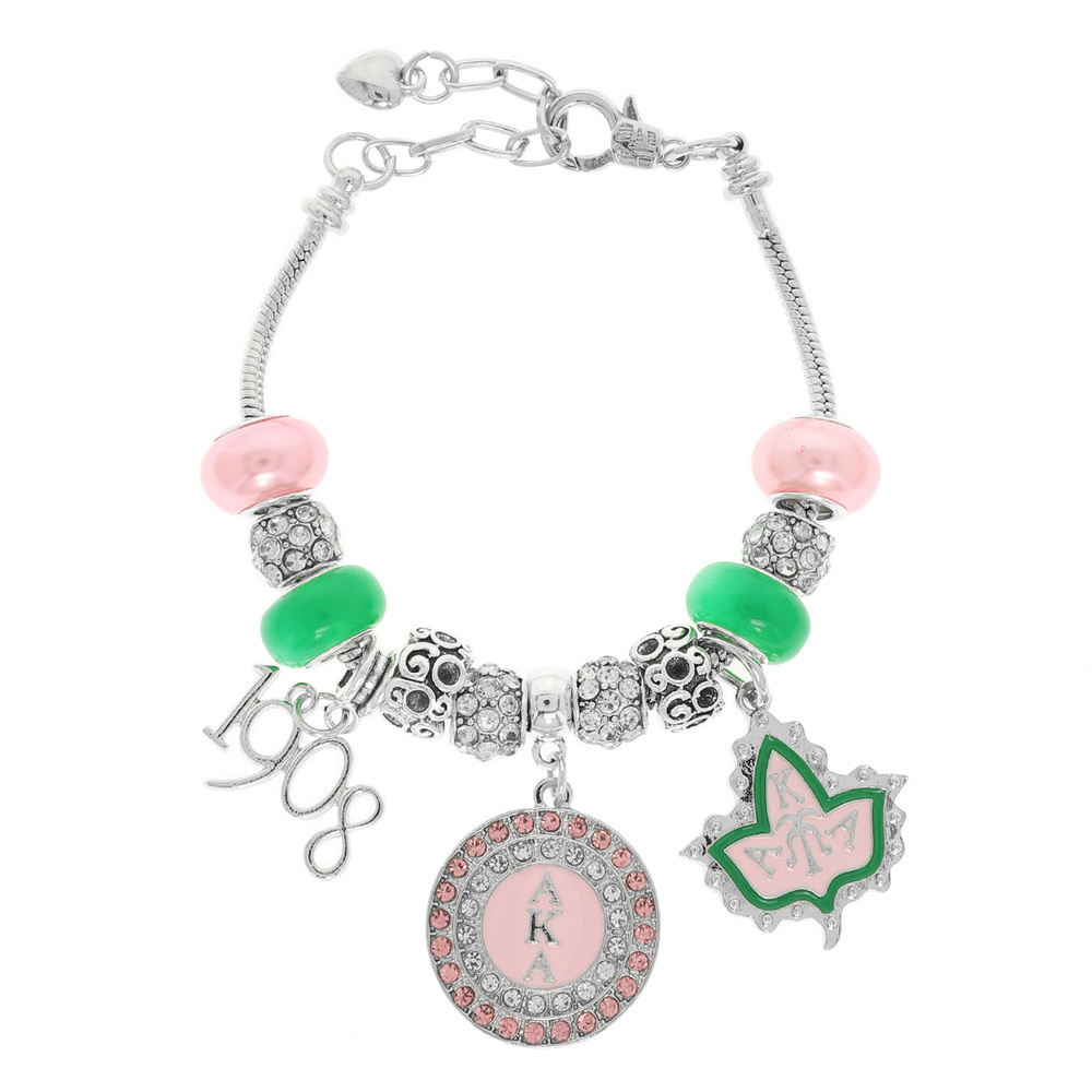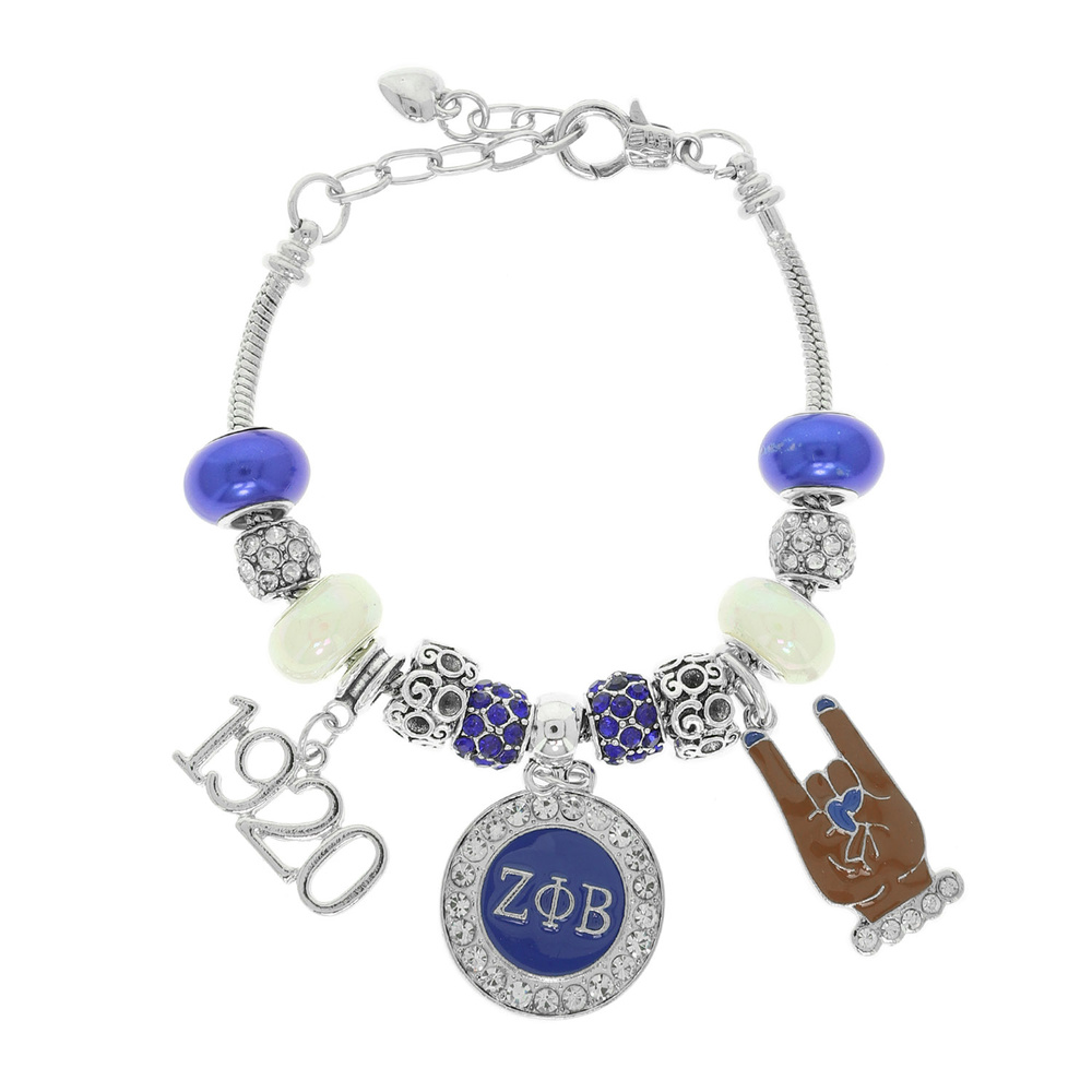 CHARM BRACELET WITH ZETA PHI BETA LETTERS YEAR PENDANT AND TRINKETS
