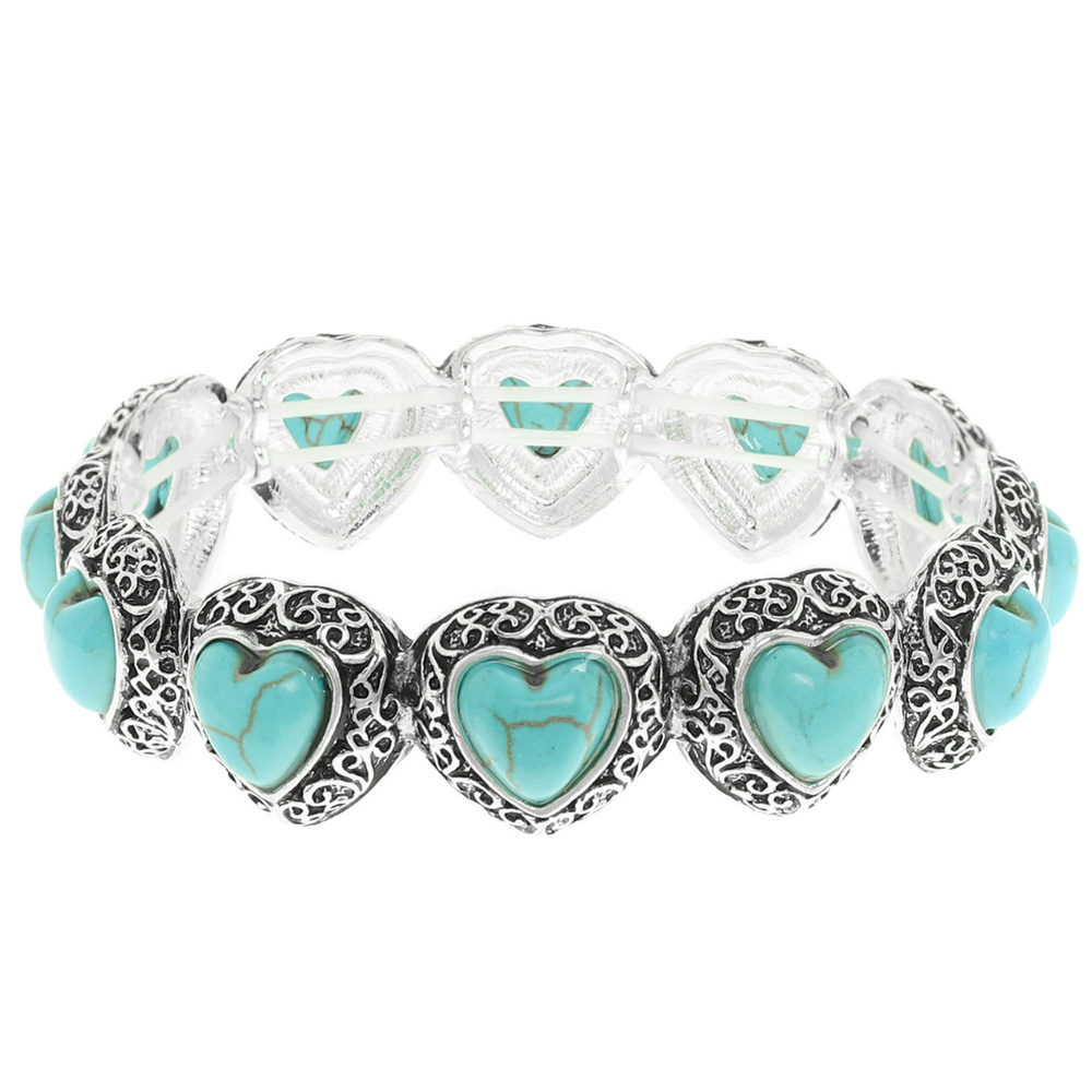 WESTERN FILIGREE HEART STRETCH BRACELET (TURQUOISE OR CRYSTAL)