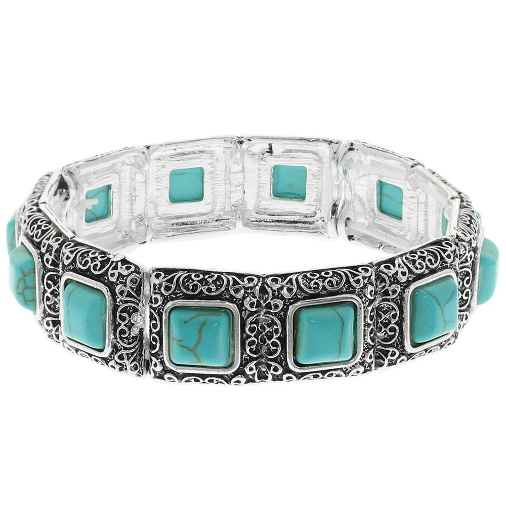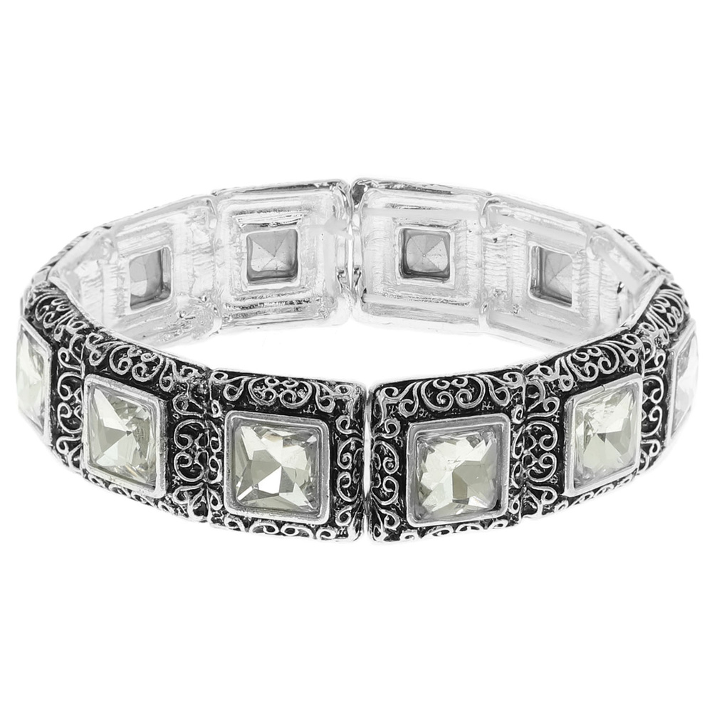 WESTERN FILIGREE SQUARE CRYSTAL STRETCH BRACELET