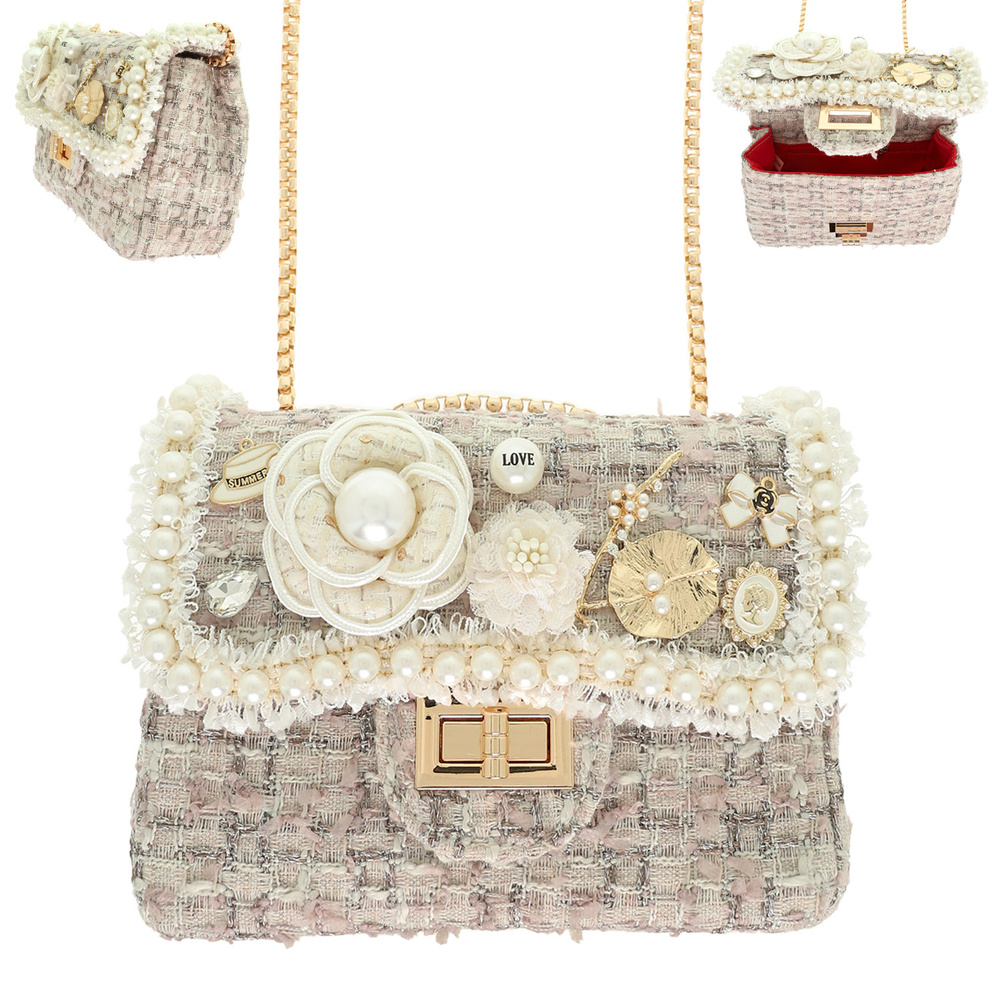 Pearl Camellia Tweed Crossbody Bag