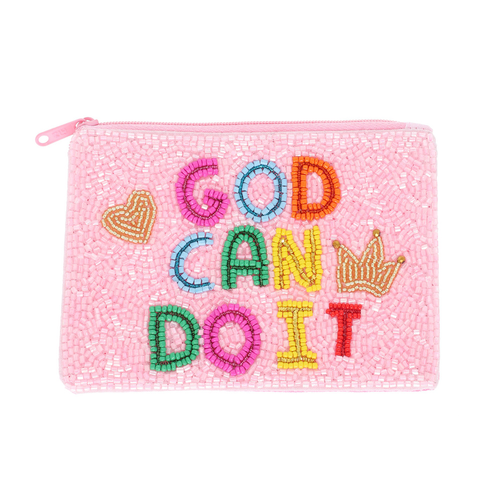 GOD CAN DO IT SEED BEADED COIN BAG IN LIGHT PINK