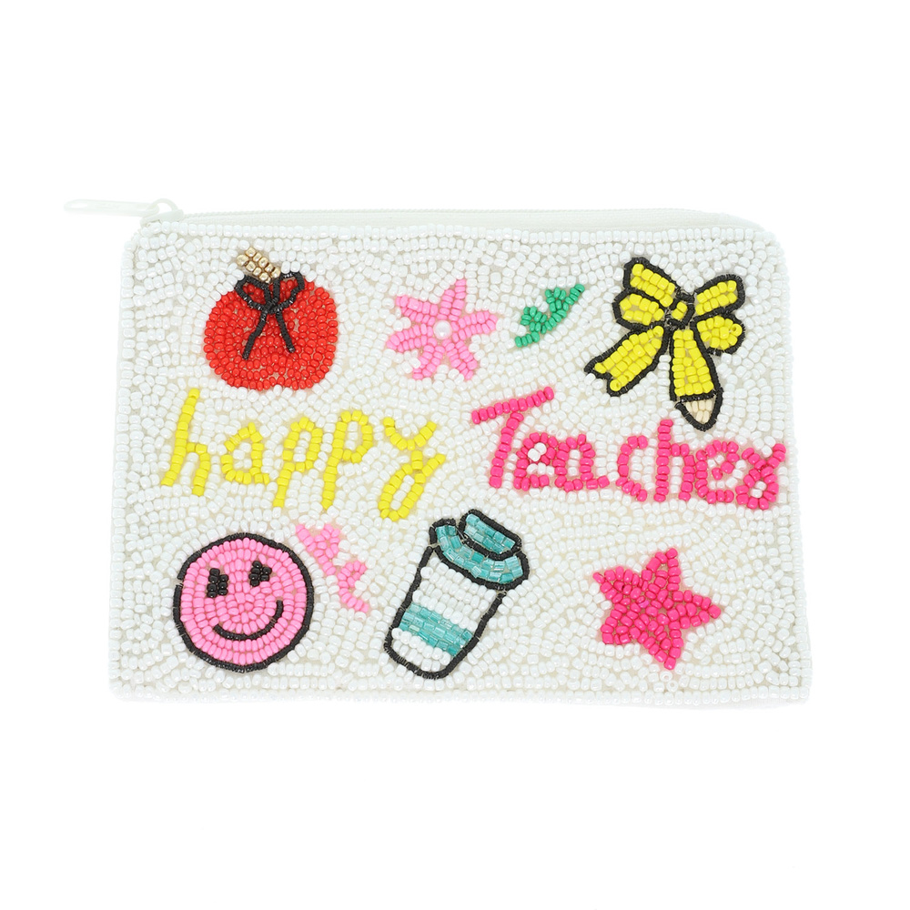 HAPPY TEACHERS SEED BEADED COIN BAG IN WHITE