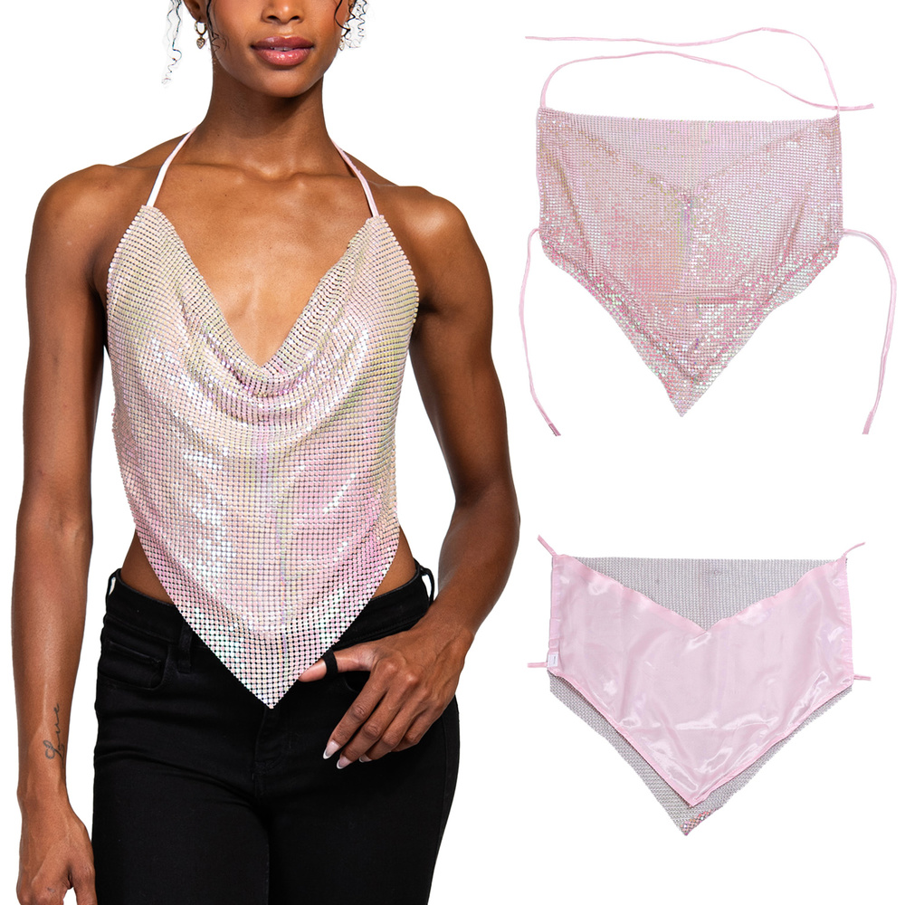 Metallic Sequin Bandana Backless Halter Top