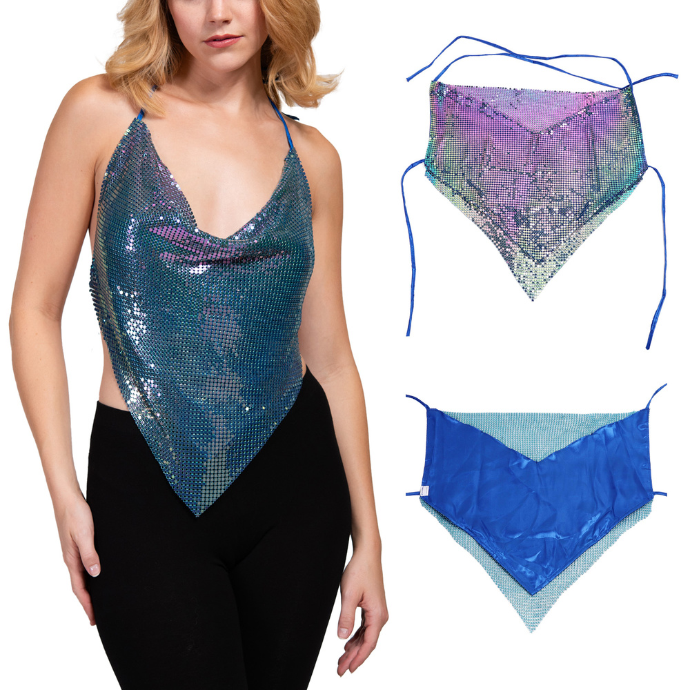 Metallic Sequin Bandana Backless Halter Top