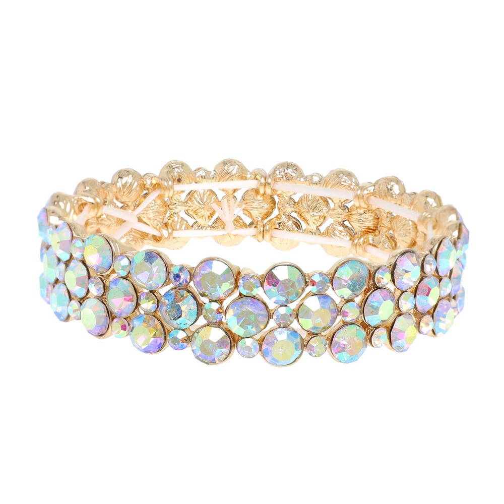 3-ROW CRYSTAL GEMSTONE CIRCLE CUT CLUSTER STRETCH BANGLE BRACELET