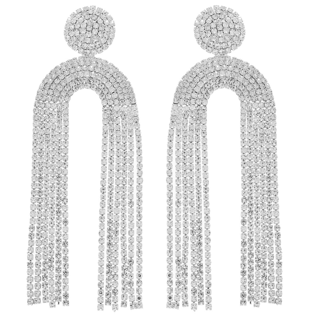 Ombre Rhinestone Pave Arched Tassel Earrings