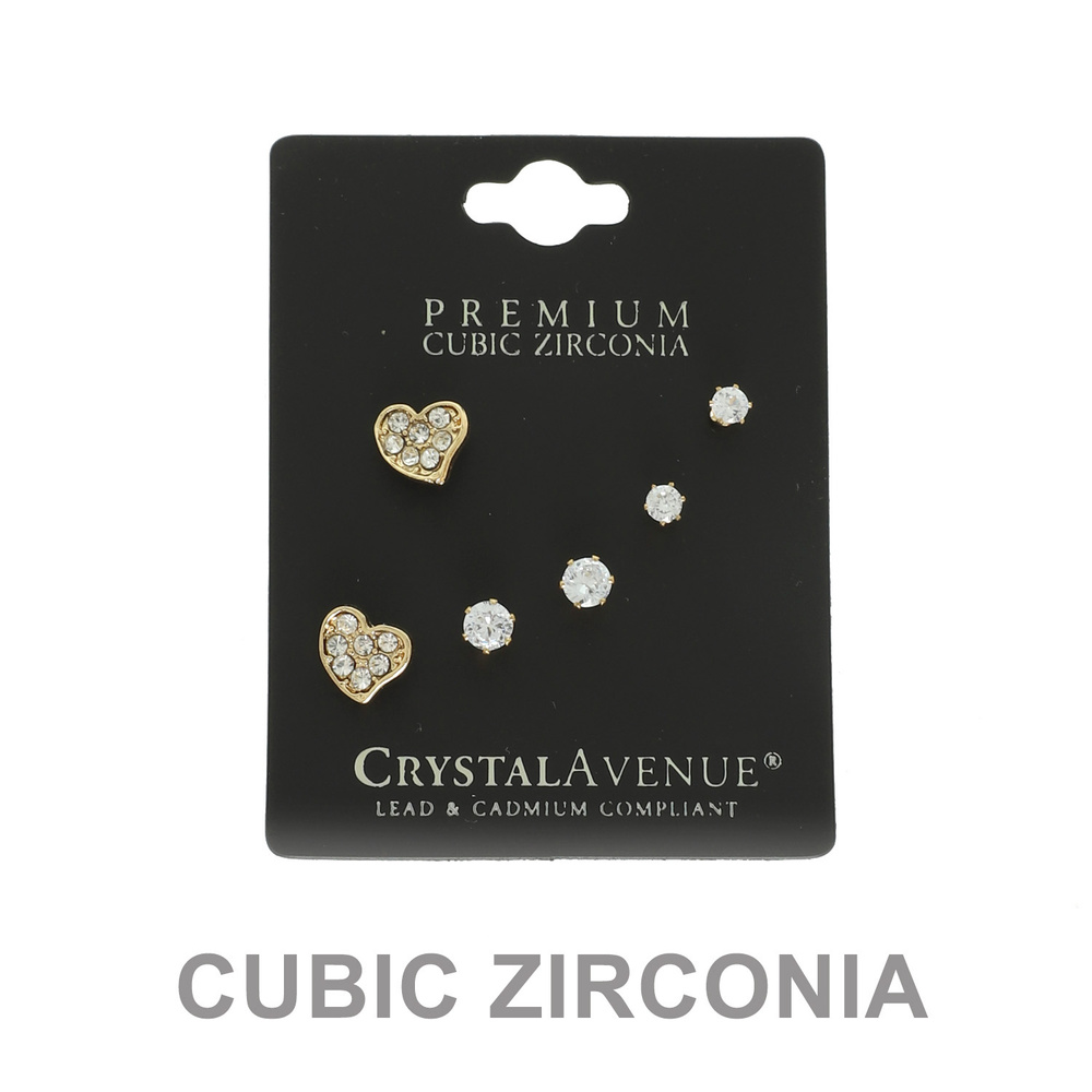 3 PAIR HEART SHAPED AND SOLITAIRE CUBIC ZIRCONIA STUD EARRING SET