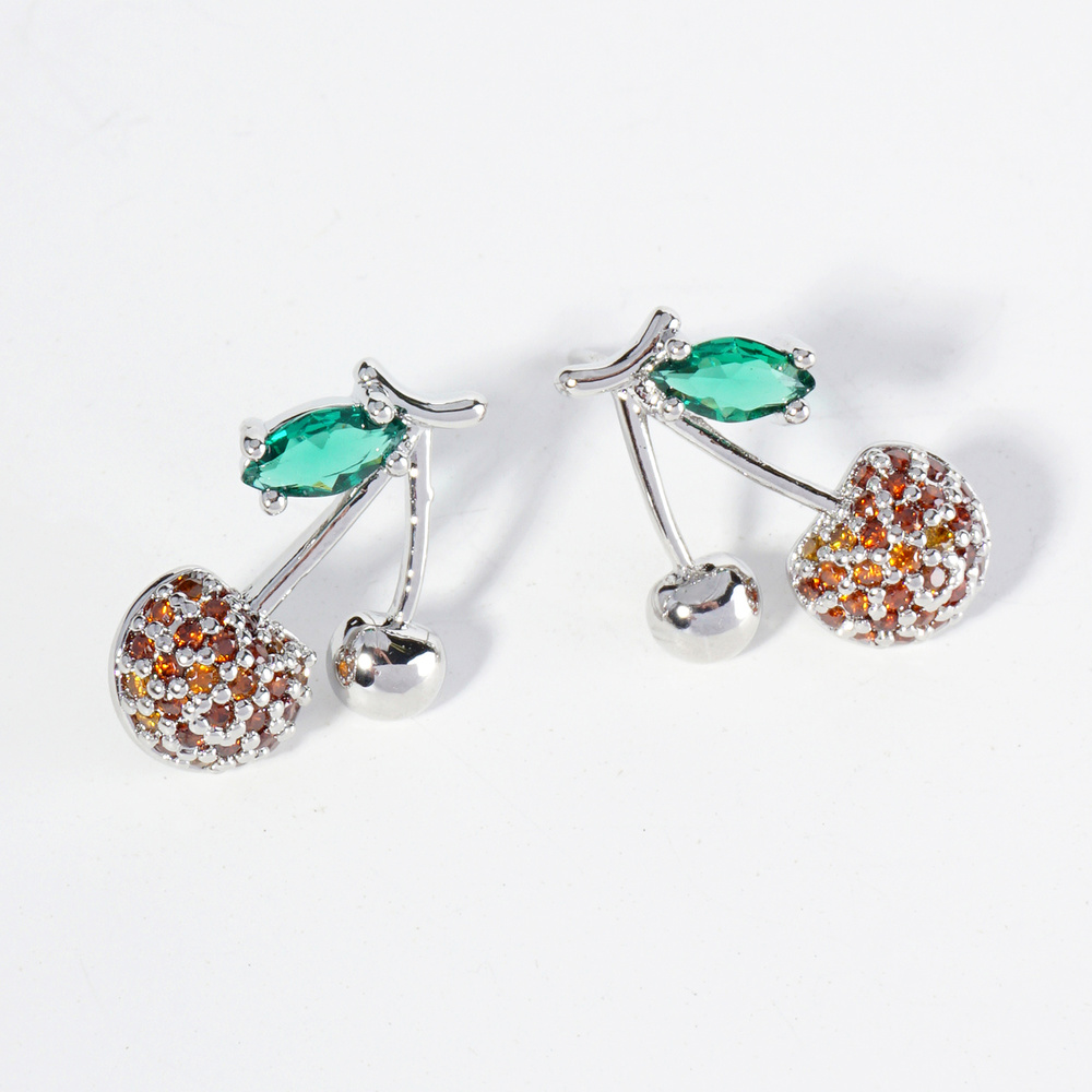 CUBIC ZIRCONIA PAVE CHERRY EARRINGS IN GOLD PLATING WITH STERLING SILVER POST