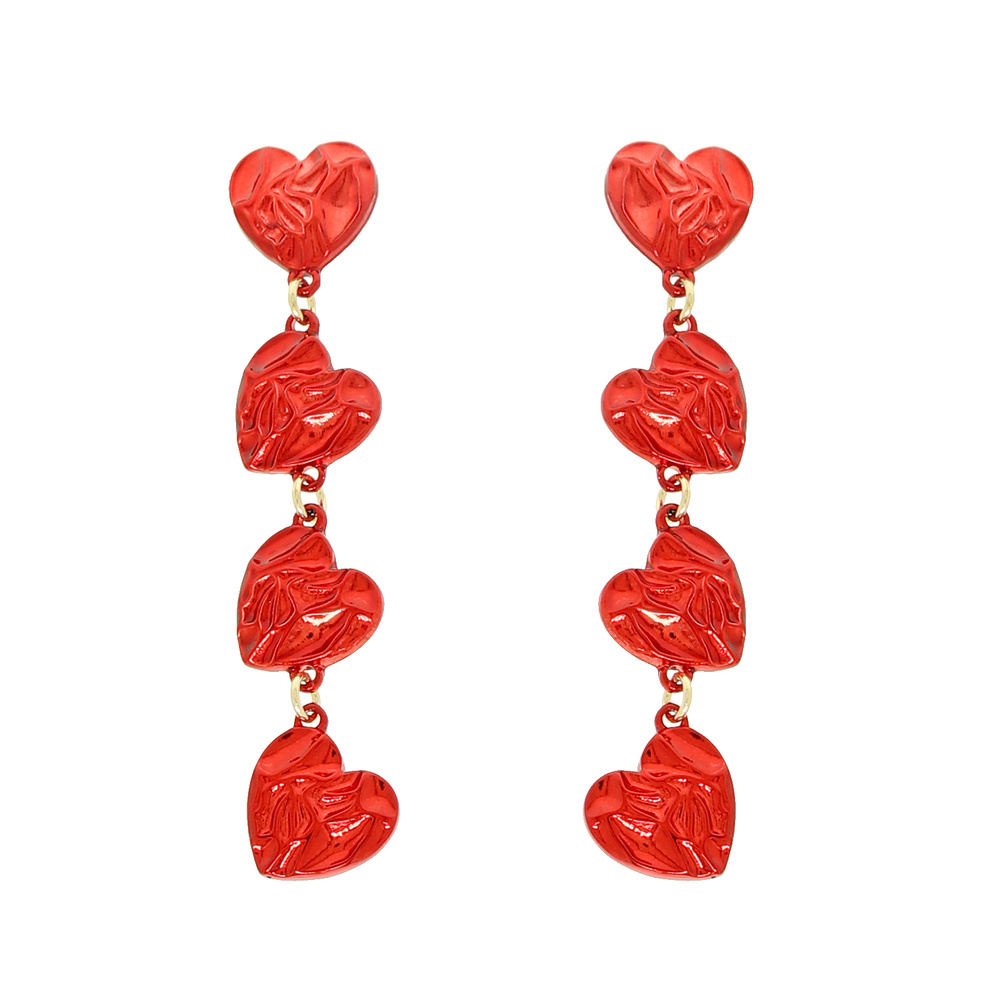 MULTI-TIER FOILED RED METALLIC HEART LINEAR POST EARRINGS