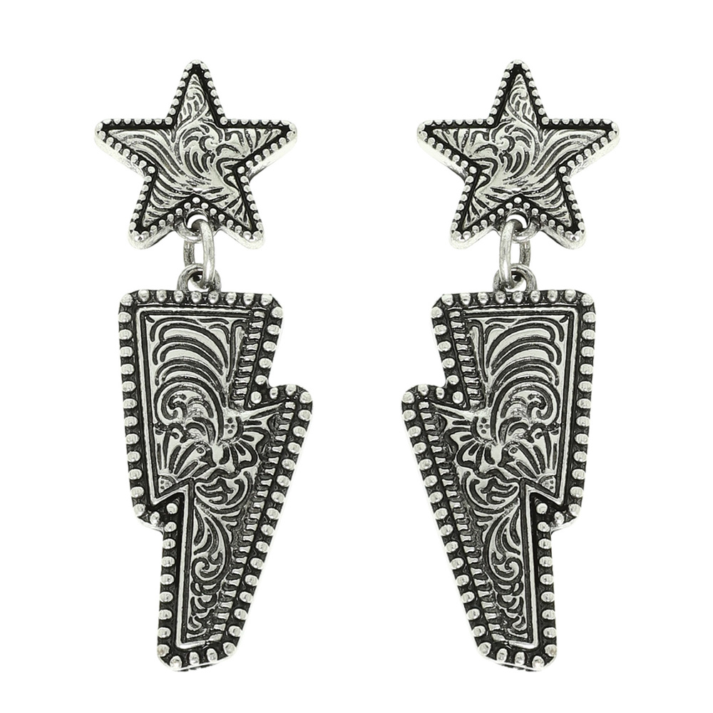 WESTERN FLORAL SCROLLED LIGHTNING POST DANGLE EARRINGS