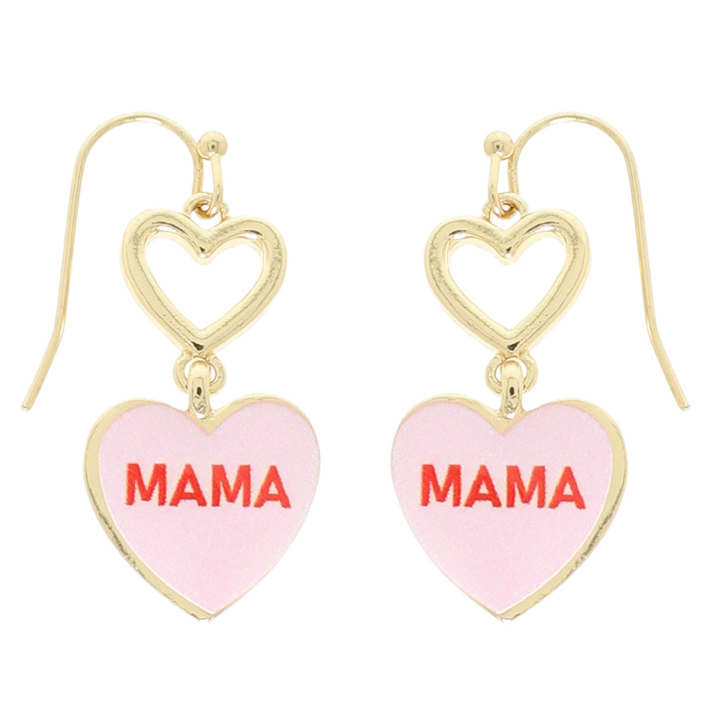 VALENTINE'S DAY "MAMA" SWEETHEARTS HEART EPOXY POST DANGLE EARRINGS