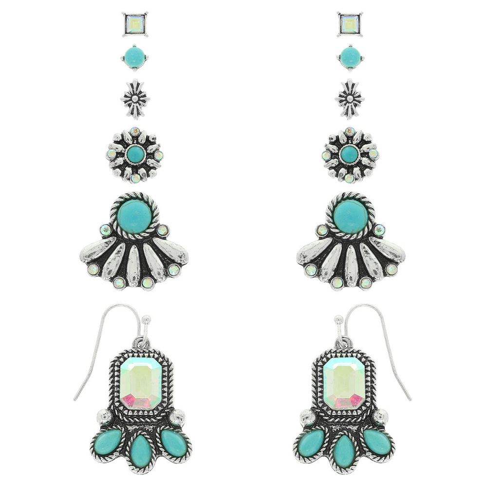 WESTERN EARRING SET WITH TURQUOISE AND CRYSTAL BEZEL SET STYLES