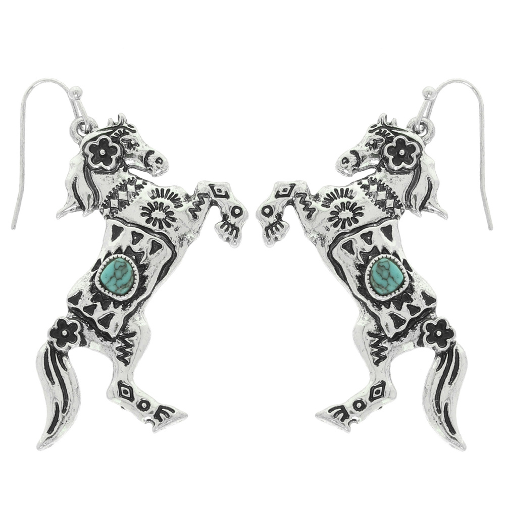 WESTERN HORSE FIGURE EARRINGS WITH TURQUOISE STONE
