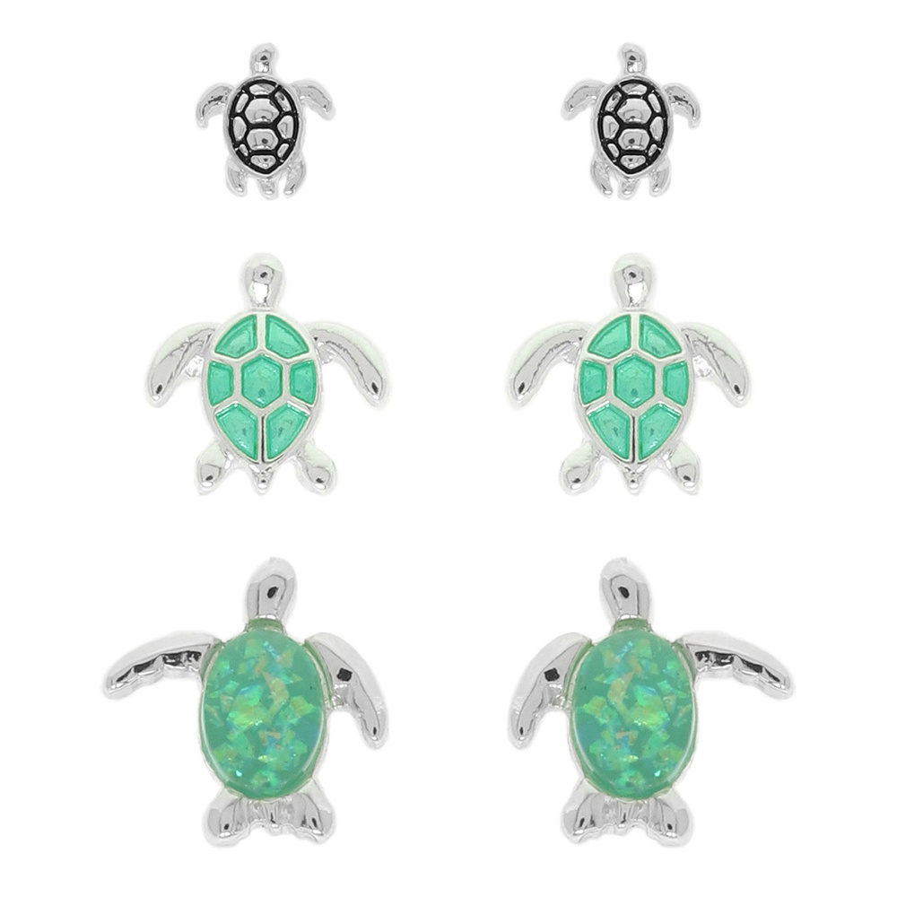 SEA TURTLE DESIGNS WITH EPOXY OPAL STONE STUD EARRING SET
