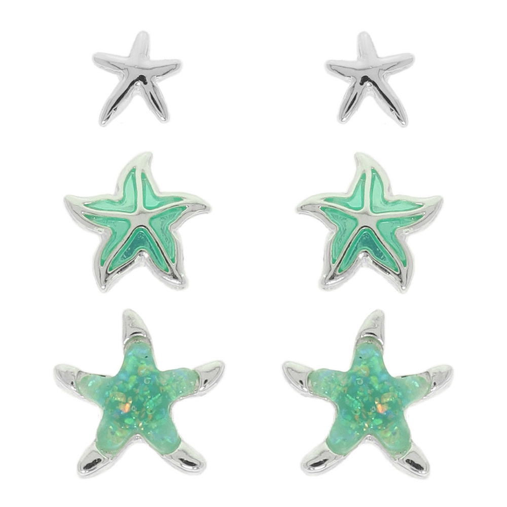 STARFISH DESIGNS WITH EPOXY OPAL STONE STUD EARRING SET