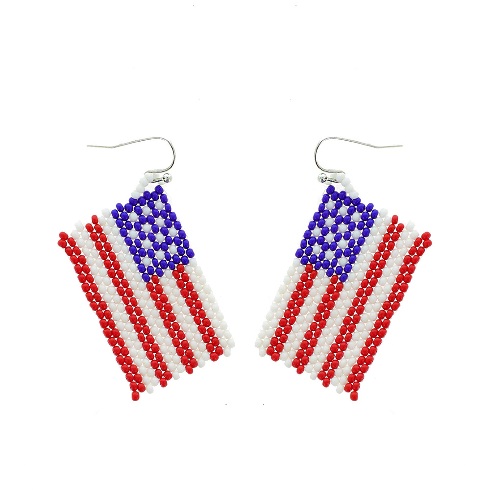 Patriotic Usa Flag Seed Bead Handmade Beaded Hook Dangle Earrings