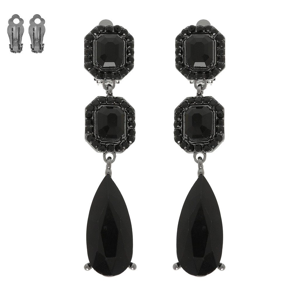 RHINESTONE PAVE MULTI-CUT CRYSTAL LINEAR CLIP ON EARRINGS