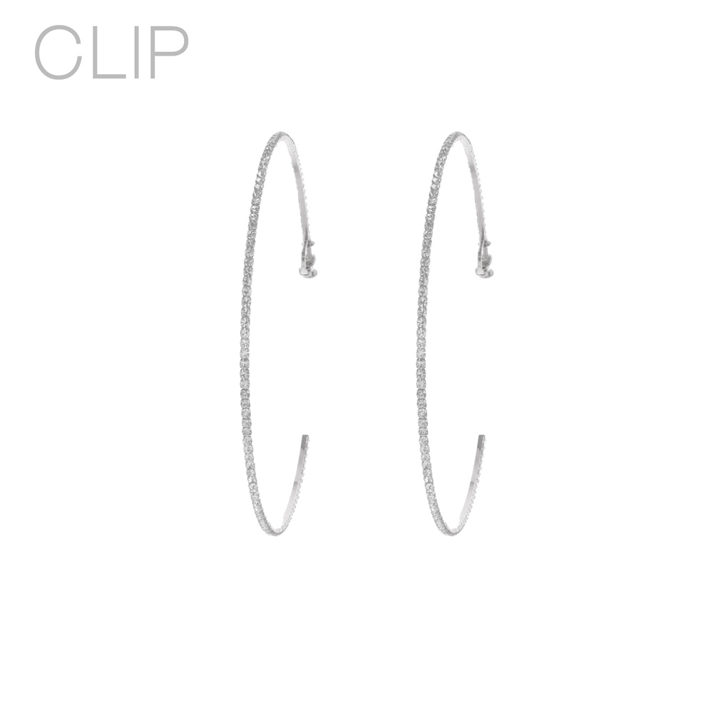 100mm Rhinestone Clip Hoop Earrings