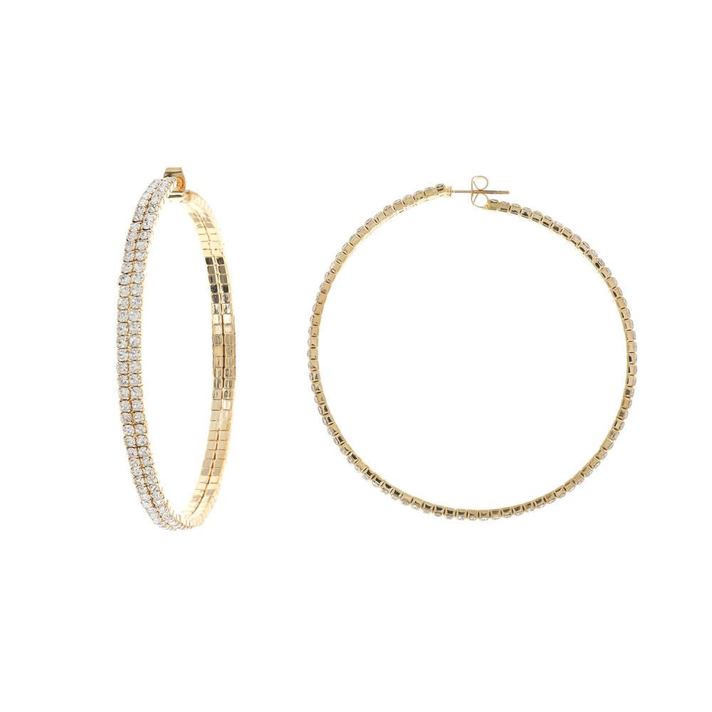40mm 2 Line Pave Rhinestone Hoop Earrings
