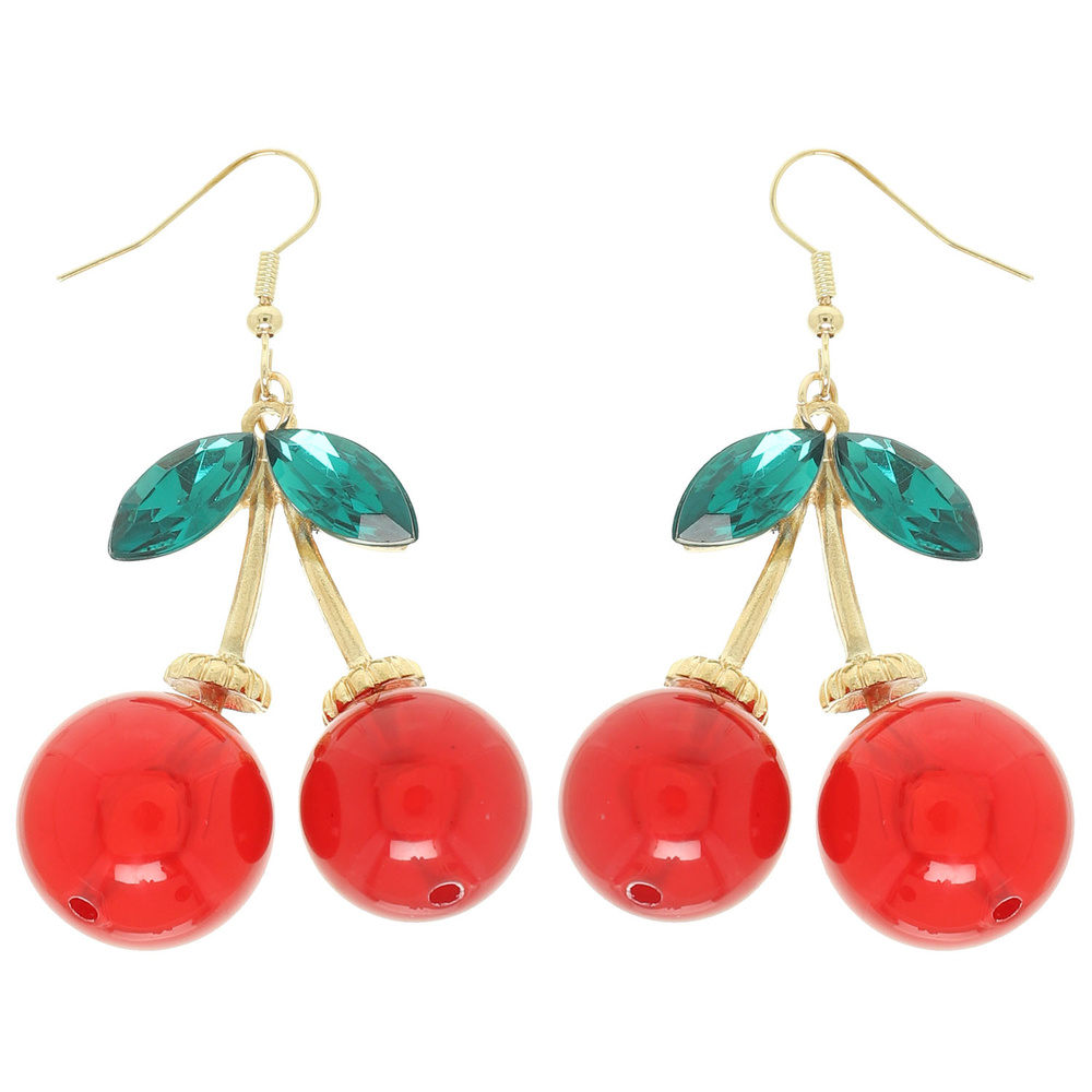 CRYSTAL EMBELLISHED RED SYNTHETIC RESIN CHERRY DANGLE EARRINGS