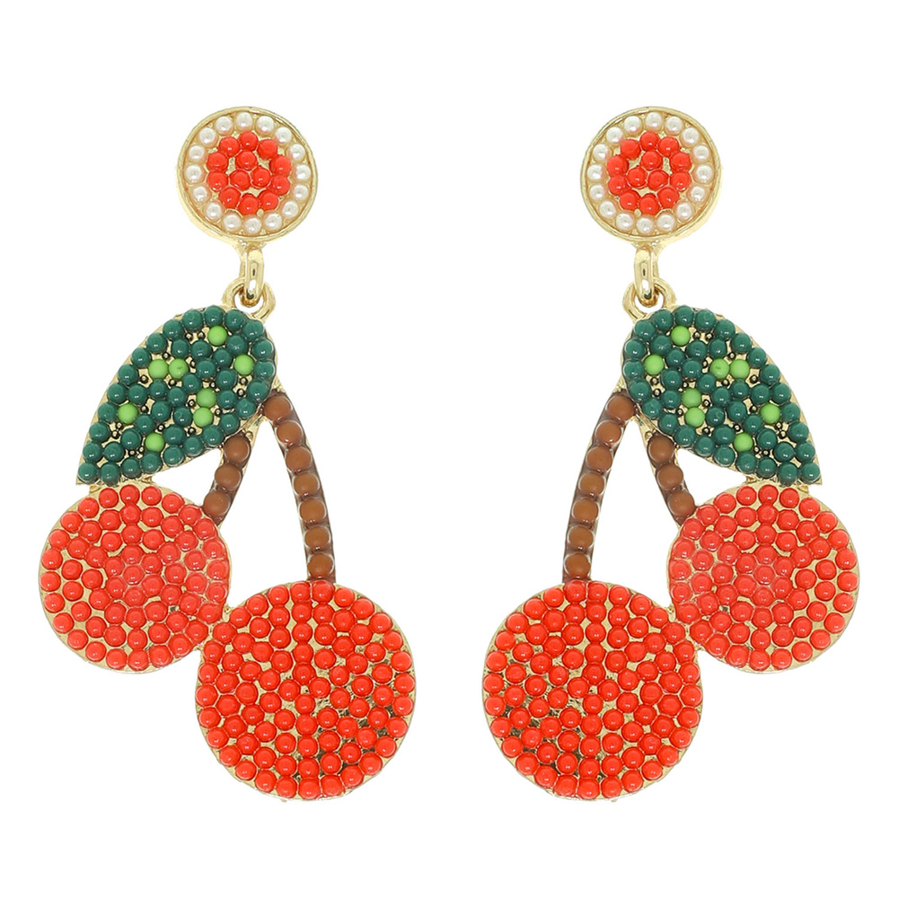 PEARL BEADED CHERRY POST DANGLE EARRINGS