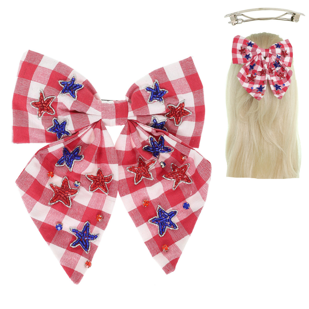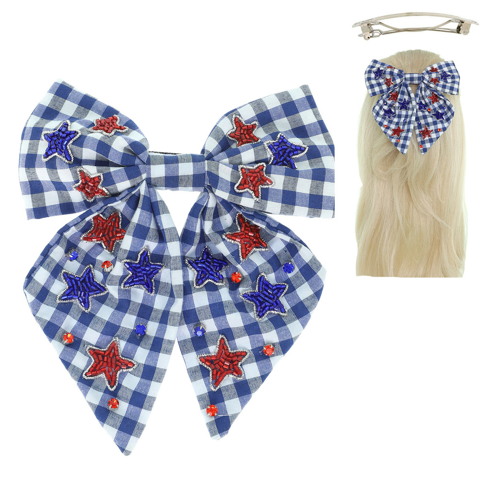 Patriotic Usa Stars Bow Barrette Hair Clip
