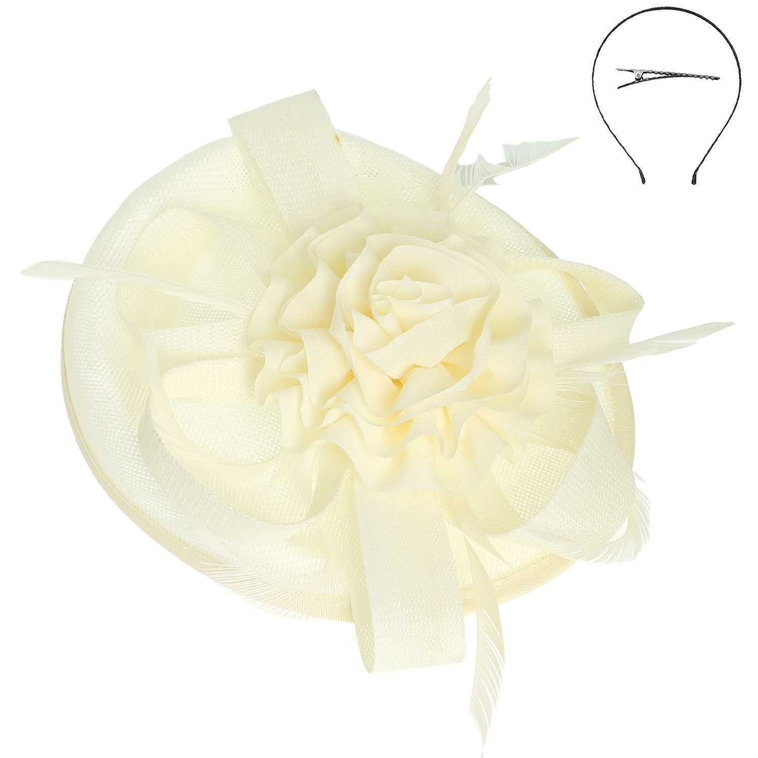 FLORAL FEATHERED SINAMAY FASCINATOR WITH HAIR GRIPS