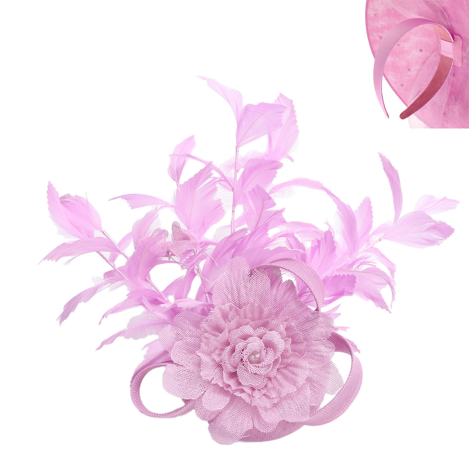FLOWER FEATHER DISC FASCINATOR WITH LOOP AND PEARL ACCENT