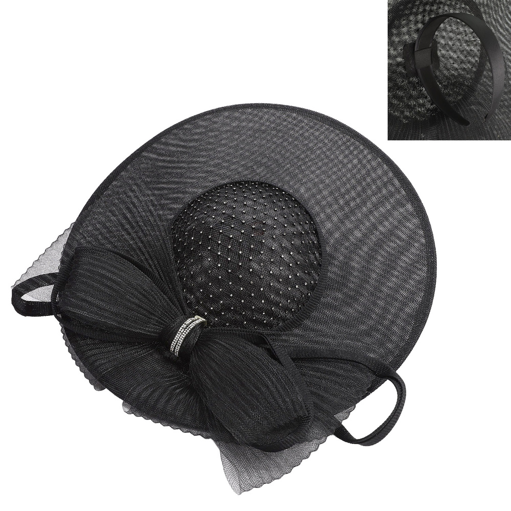 ORGANZA BOW WITH RHINESTONE RING SAUCER FASCINATOR
