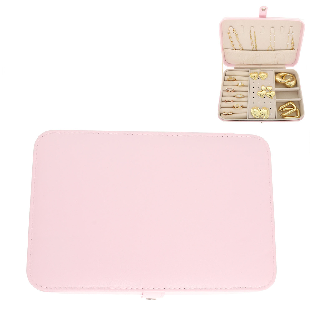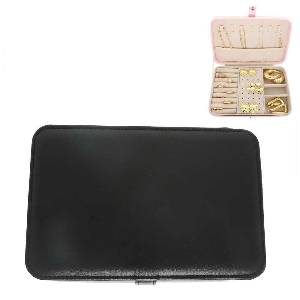 BLACK PU LEATHER LARGE TRAVEL JEWELRY BOX WITH MULTIPLE COMPARTMENTS